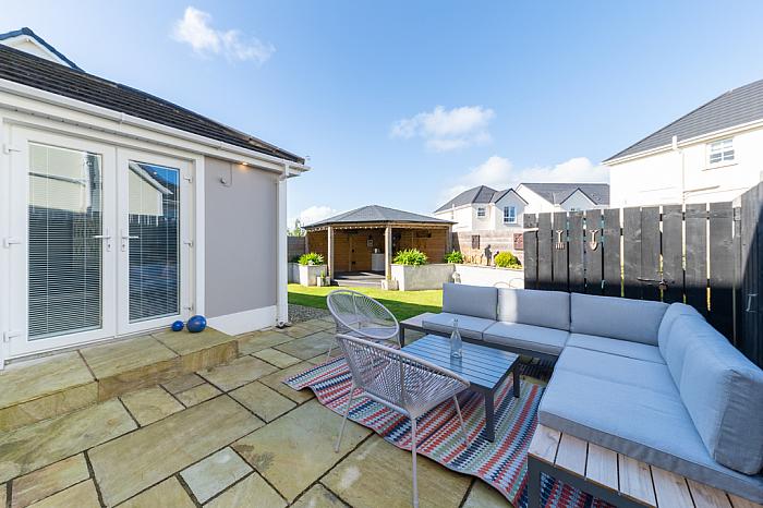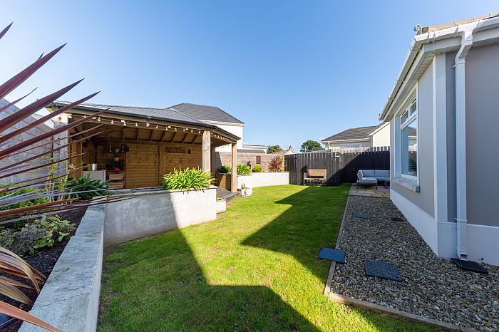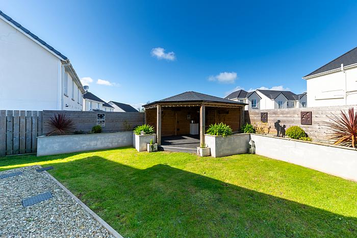 Large Sunny Gardens to Rear with Feature Wooden Gazebo