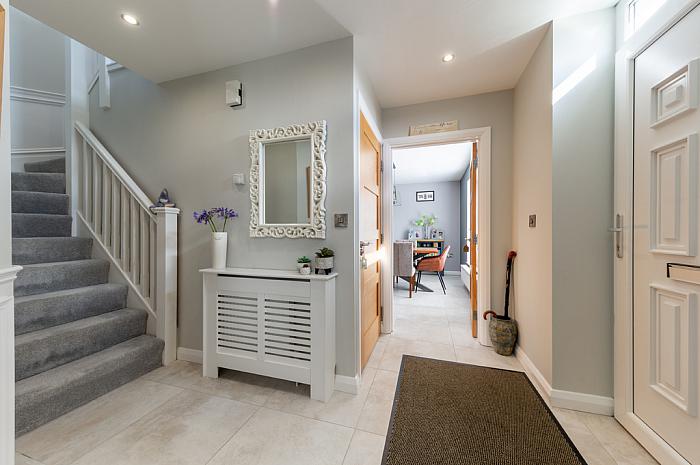 This impeccably stylish and spacious detached property offers a wealth of modern and contemporary accommodation throughout, without the snag list! Set in the sought after Rockfield development the property is set on a prime site without being overlooked to the front and will appeal to those looking for a readymade home in a convenient location. Situated within walking distance to the village of Carrowdore with a selection of local shops, sought after schools, and amenities the property is also within easy commuting to Bangor and Newtownards both just a short distance away. The property comprises of bright entrance hallway, modern and spacious dual aspect lounge with feature panelled walls, large contemporary open plan kitchen with casual dining area open to sunroom with wood burning stove and French doors leading out to the large sunny rear gardens with paved sun terrace, laundry room and modern downstairs bathroom. Upstairs there are three beautifully presented bedrooms, including extensive dual aspect master with ensuite and a contemporary family bathroom with freestanding bath. Outside the property has private gardens to front and large driveway to the side proving ample car parking and to the rear are well maintained private enclosed sunny gardens, laid in lawn and with feature wood gazebo providing a great outdoor space whatever the weather.perfect.