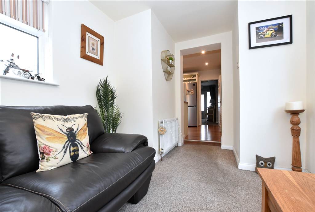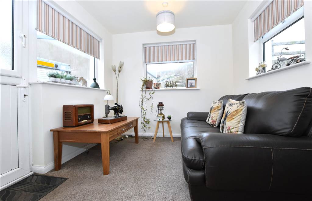 Bright sitting room at the rear of the property which is a pleasant place to relax. There are windows on each wall and a stable style upvc door to the exterior.
