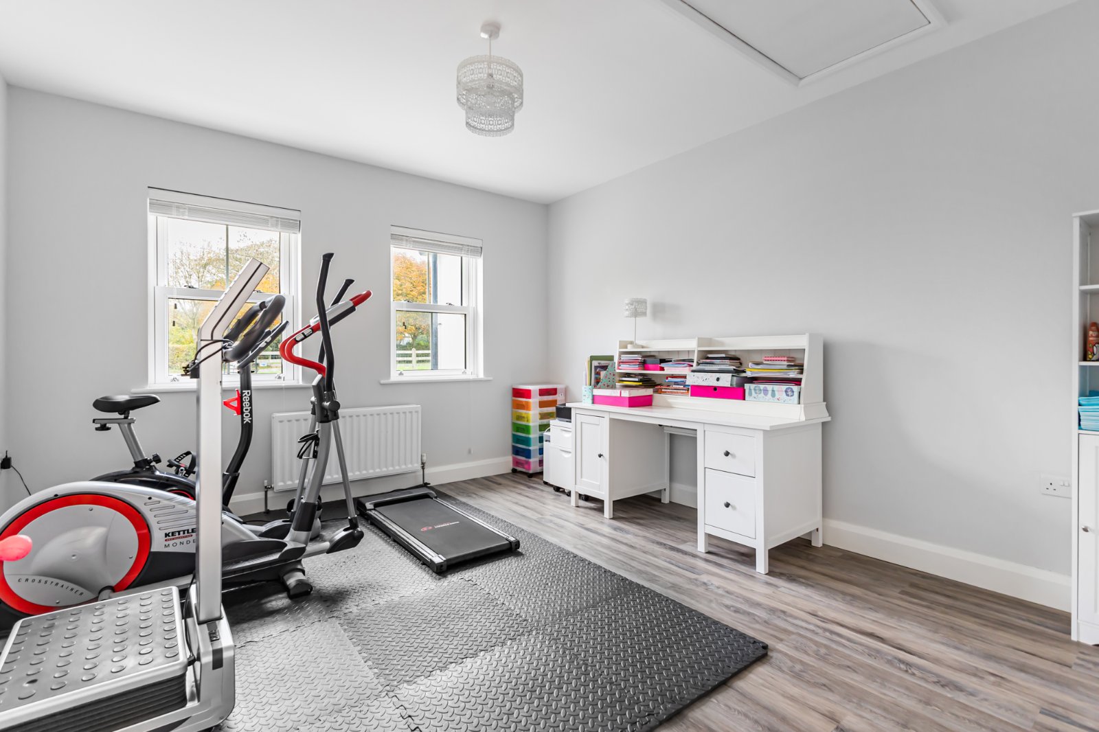 There are four spacious bedrooms, including a master suite complete with a walk-in wardrobe and luxurious ensuite shower room. The main bathroom has been finished in a sleek, contemporary style, providing a calming haven for relaxation.