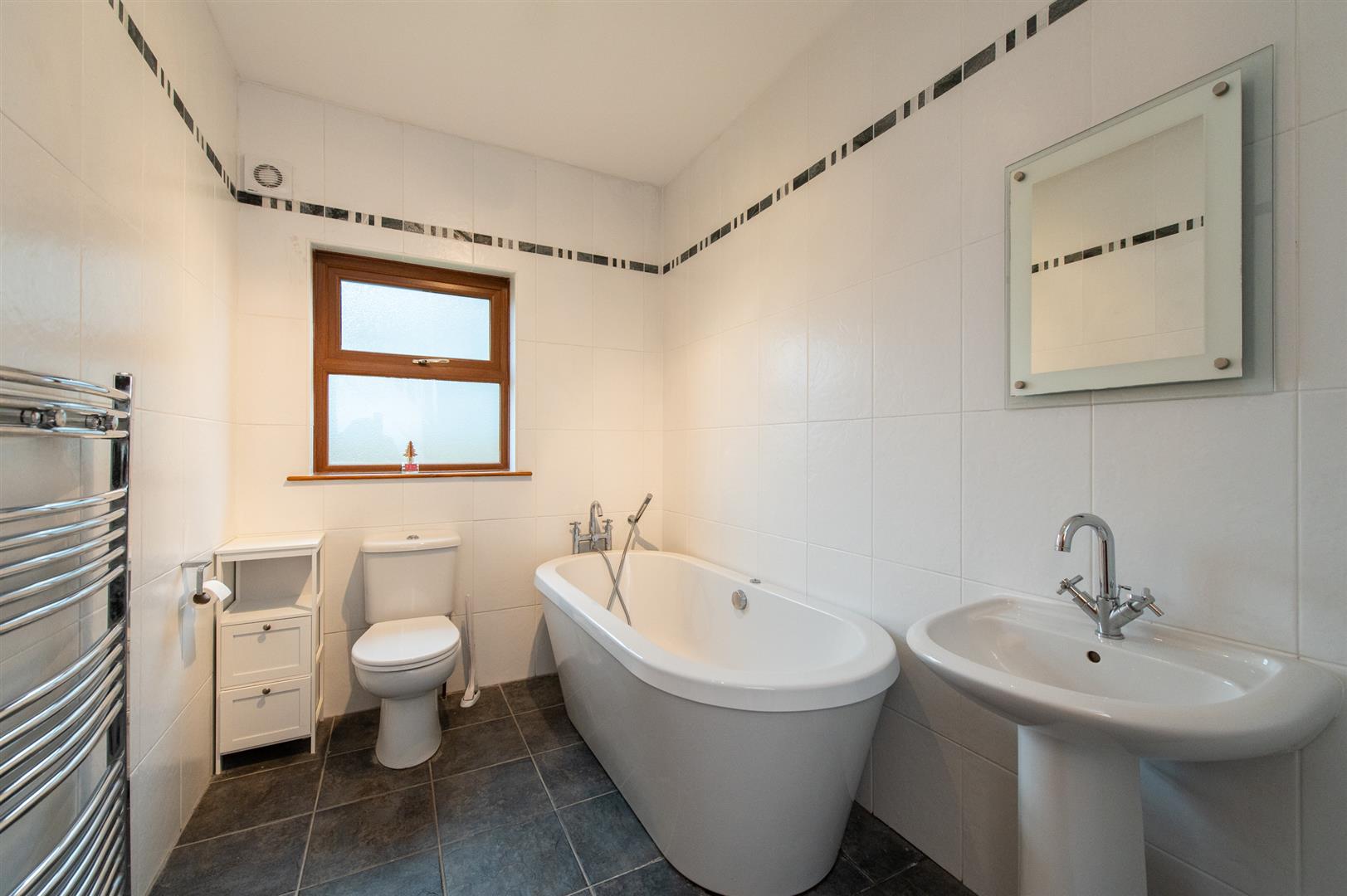 Externally, the home sits on a generous site with extensive off-street parking, a paved driveway and a spacious detached garage complete with a fully fitted utility room and separate WC. The enclosed rear garden with patio areas provides the perfect space for outdoor relaxation.