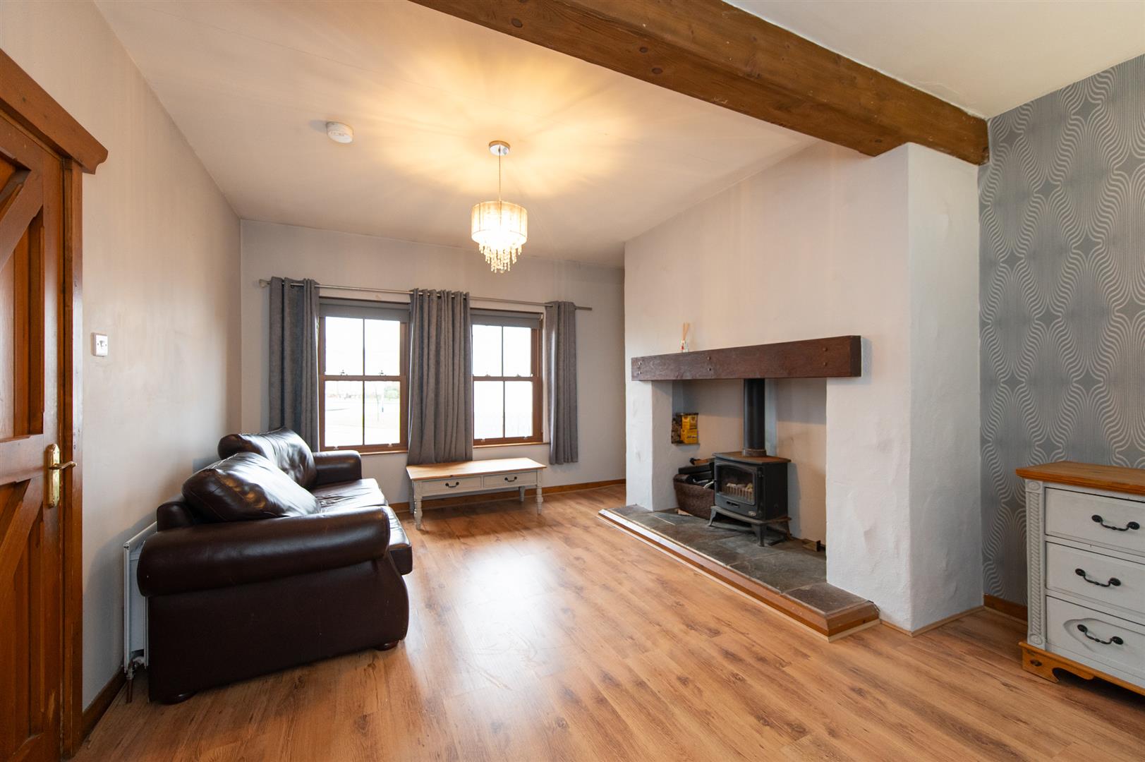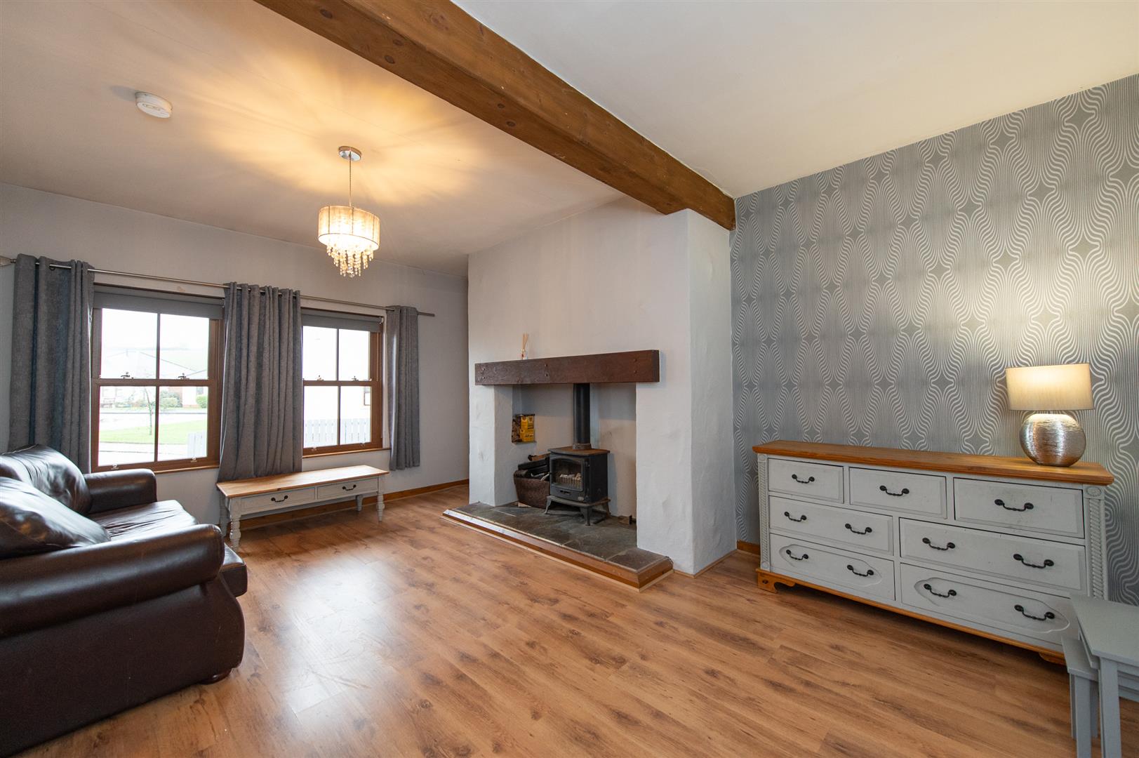 Internally, the property is bright and well laid out, featuring a welcoming entrance hall, a cosy lounge with a wood-burning stove, and a modern fully fitted kitchen open planned to the dining area. The ground floor also includes two bedrooms (ensuite), a family bathroom and a separate office space. Upstairs, there are three further bedrooms and an additional shower room, offering excellent flexibility for growing families.