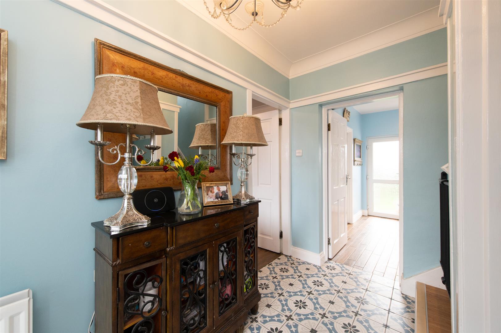 A welcoming entrance hall that will guide you through the ground floor. This home comprises of a warm and spacious lounge with an open fire, a separate dining room with double doors that conveniently leads you to the rear garden, a fully fitted kitchen with excellent storage, a cloakroom that leads you to the WC, and a versatile family room with an open fireplace that could easily serve as a fourth bedroom.