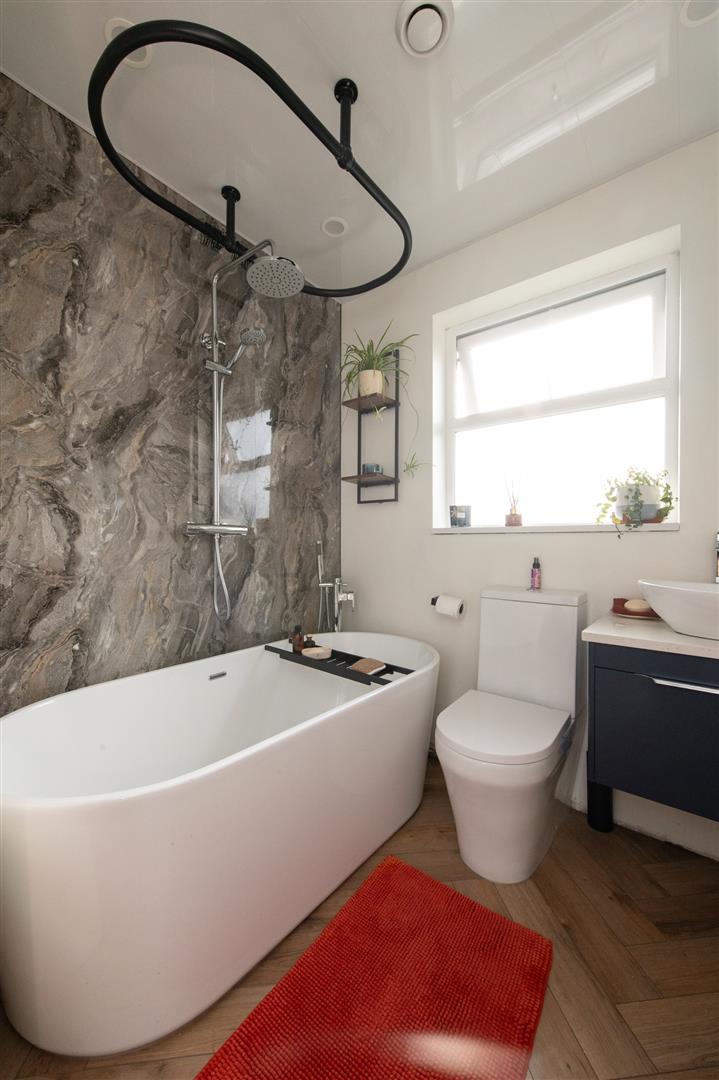 Upstairs, the converted roof space provides three well-proportioned bedrooms, including a principal bedroom with ensuite and additional roof space access.