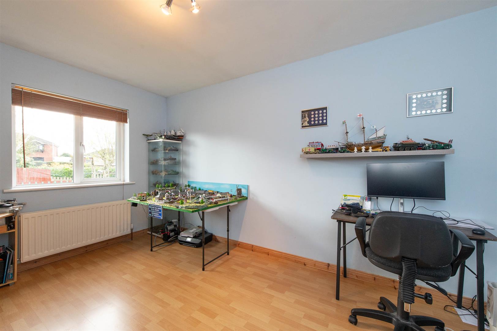 Upstairs, a generous central landing provides access to four well-proportioned bedrooms, each offering ample space and versatility. The principal bedroom benefits from a private en-suite, while a contemporary family bathroom serves the remaining bedrooms.