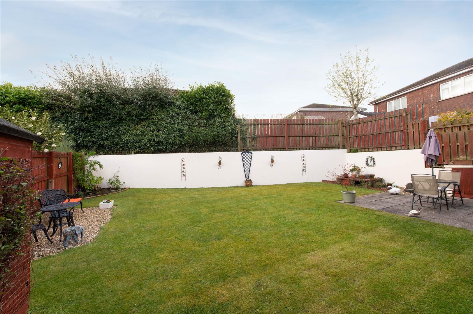 Externally, the home benefits from a generous site with a fully enclosed rear garden, front lawn, off-street parking, and an attached garage.