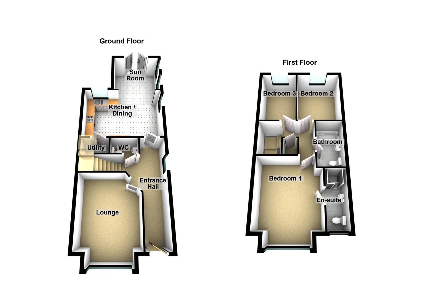 The property itself offers spacious well appointed accommodation comprising, lounge to the front, kitchen / dining / living to the rear, downstairs w/c and three bedrooms, principle with en-suite and white bathroom suite on the first floor.