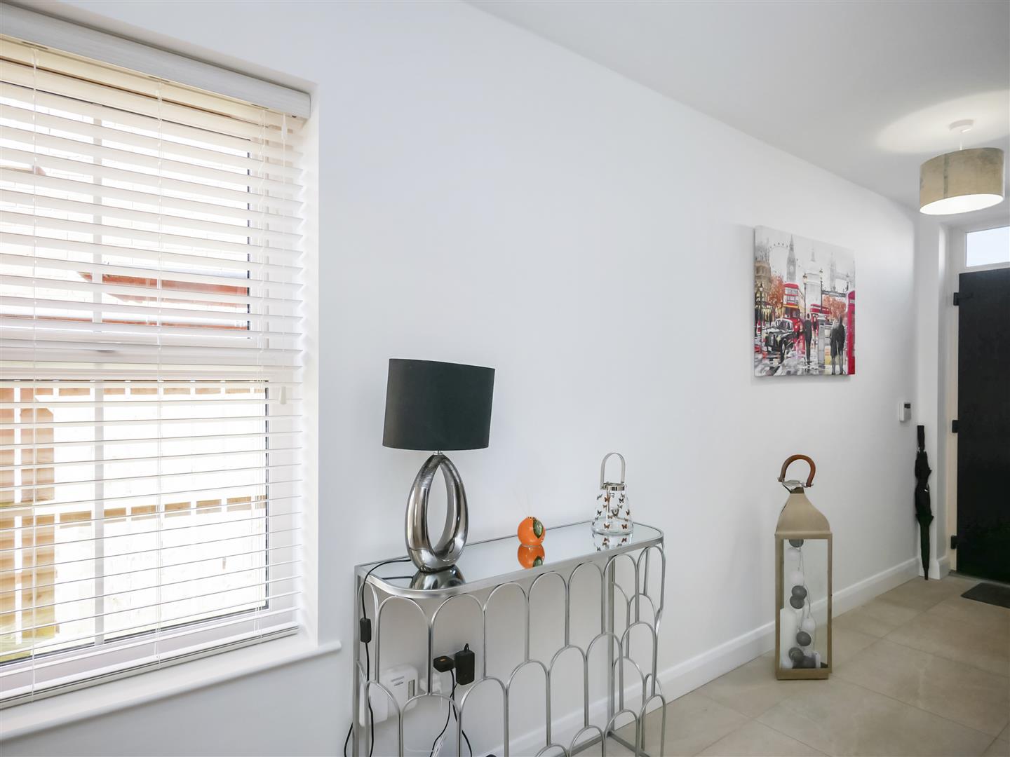 Panelled front door with fan light to entrance hall. Tiled flooring.