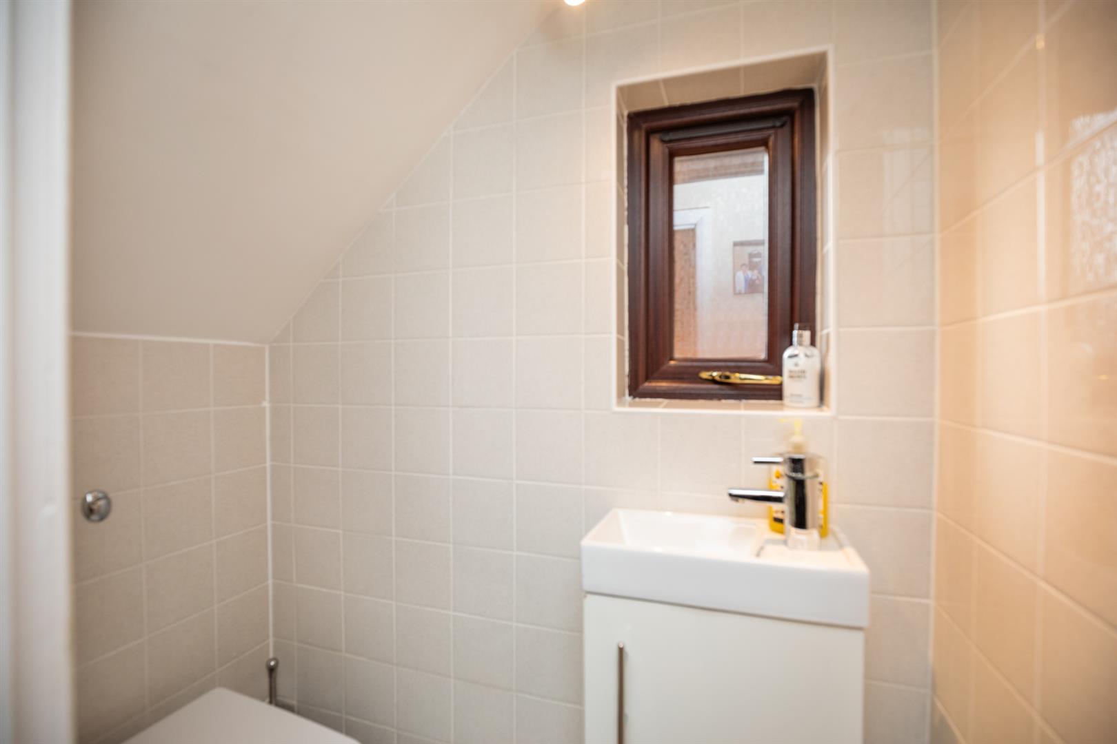 Ground floor toilet comprising low flush w/c, wash hand basin, tiled floor.