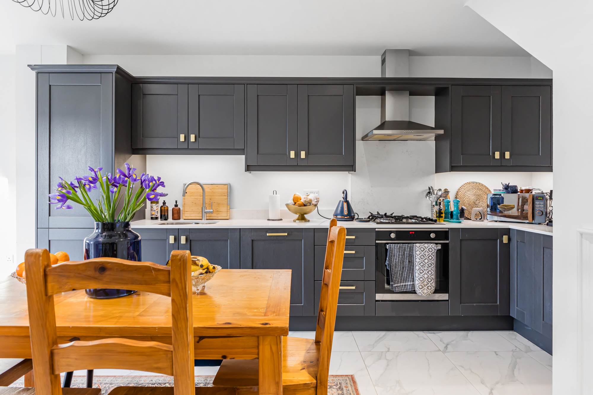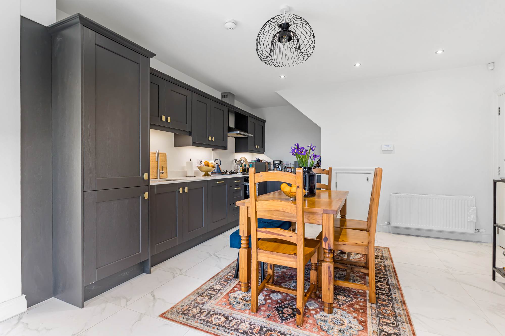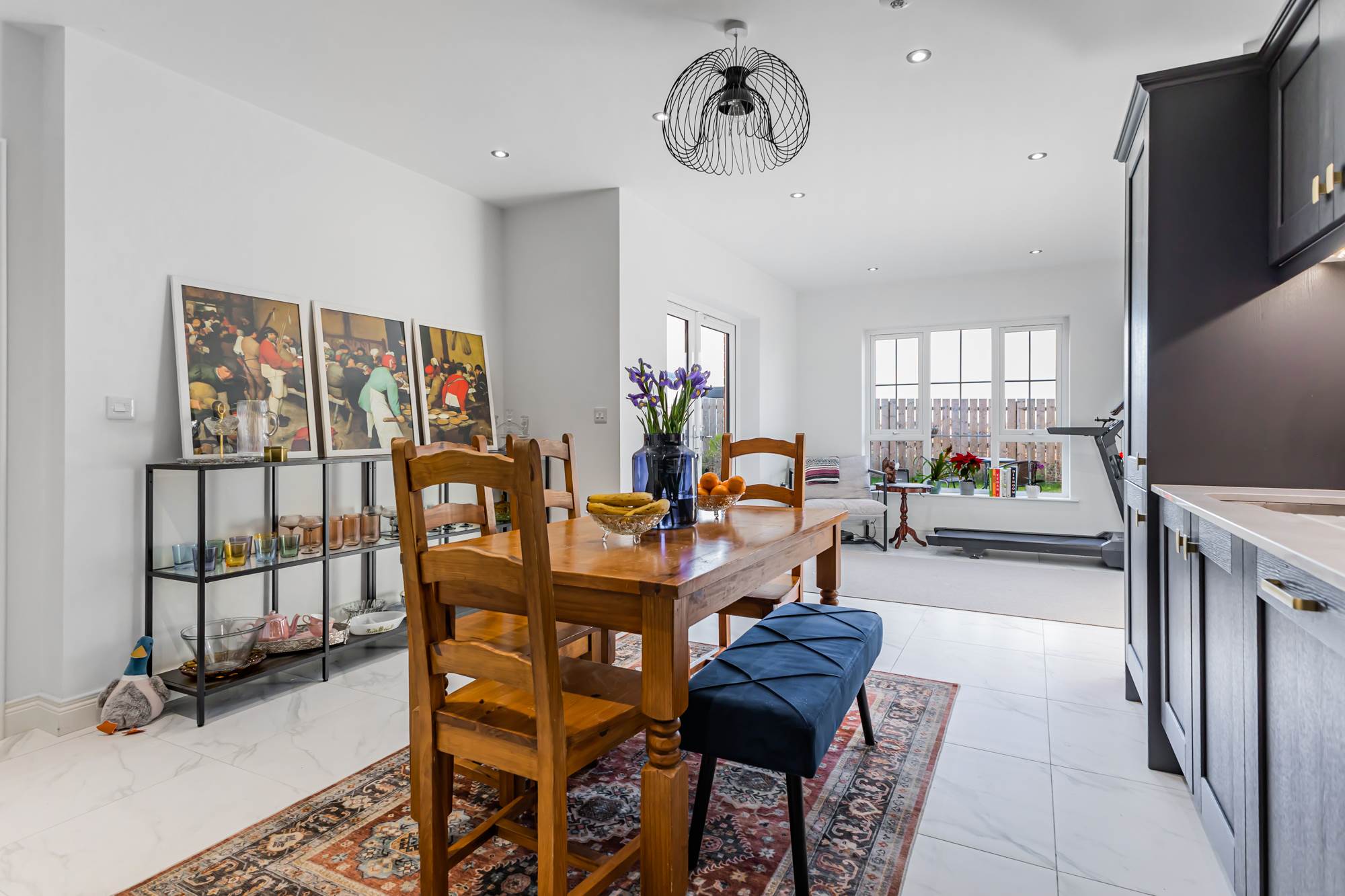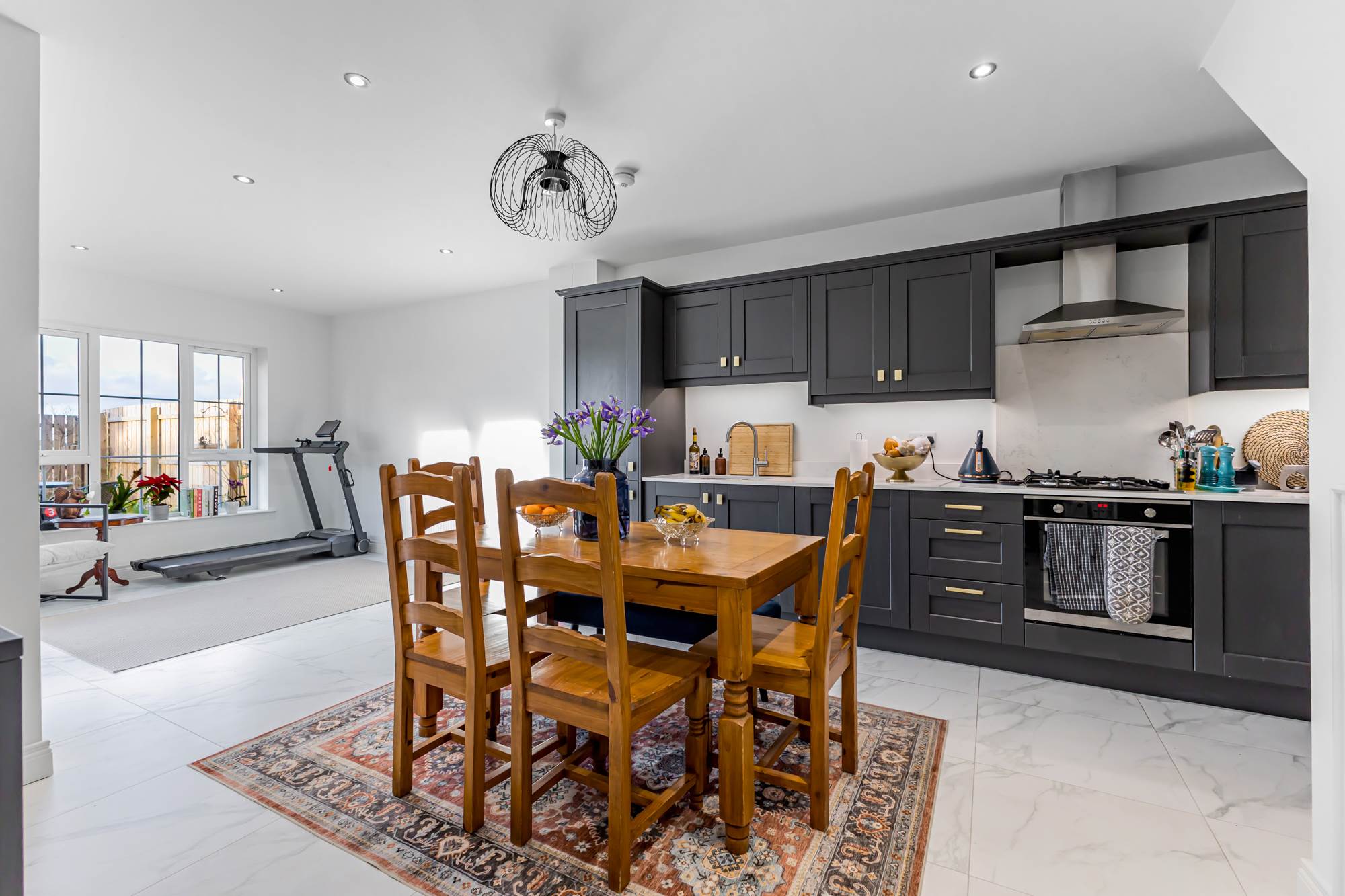 Contemporary open-plan kitchen/dining area with integrated appliances