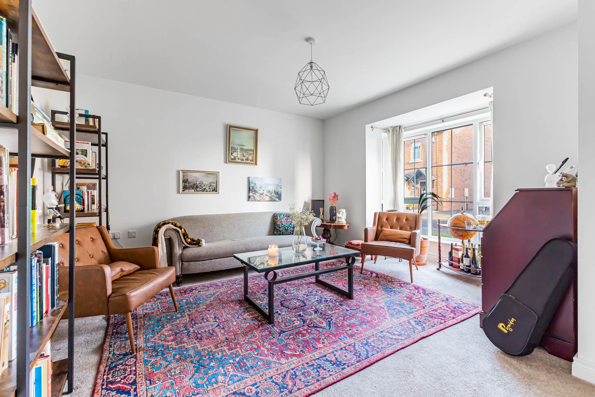 Living room with square bay