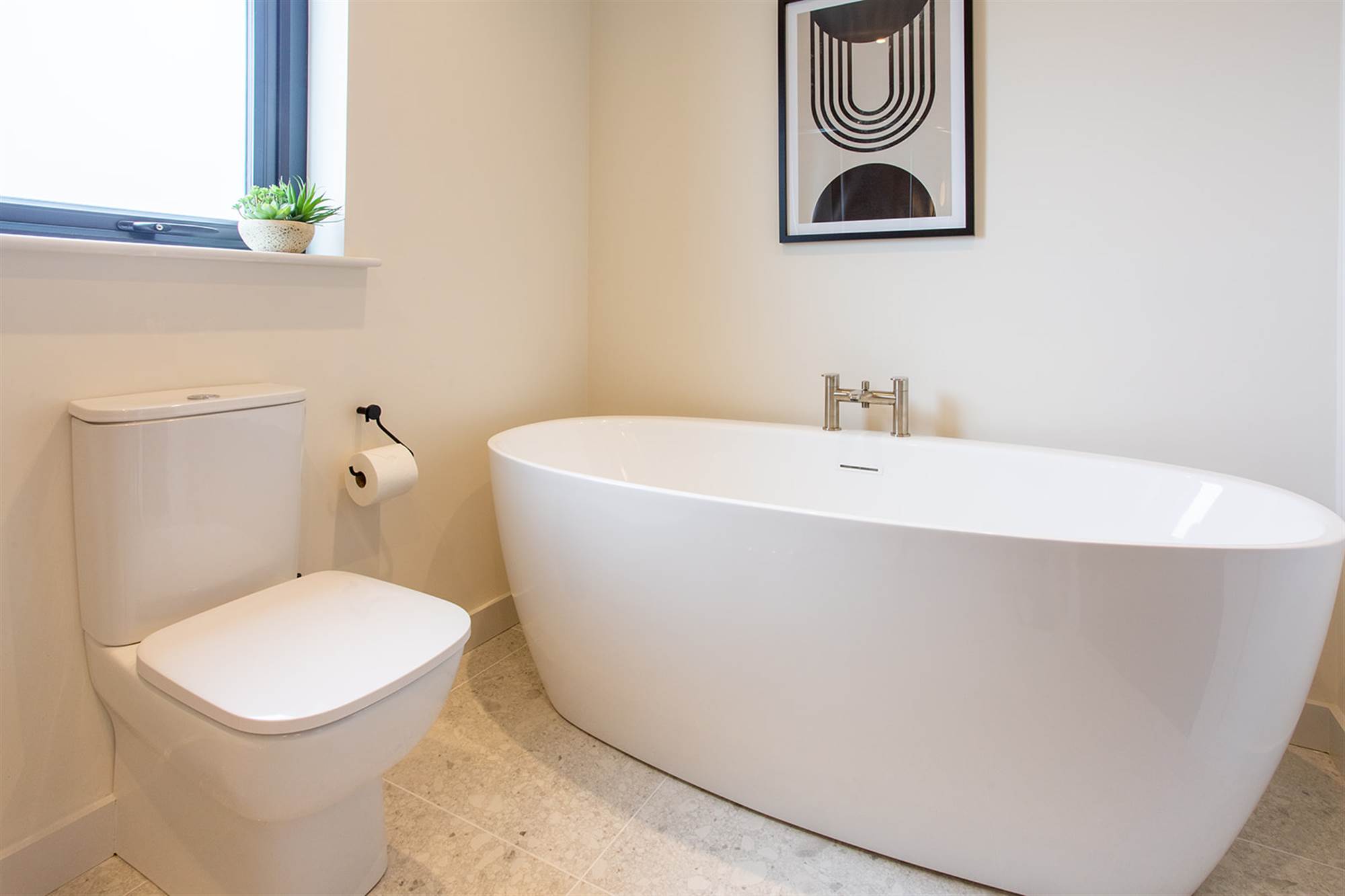 Tiles to bathroom floors, showers and splash backs. Tiles to cloakroom and utility floors (where applicable)