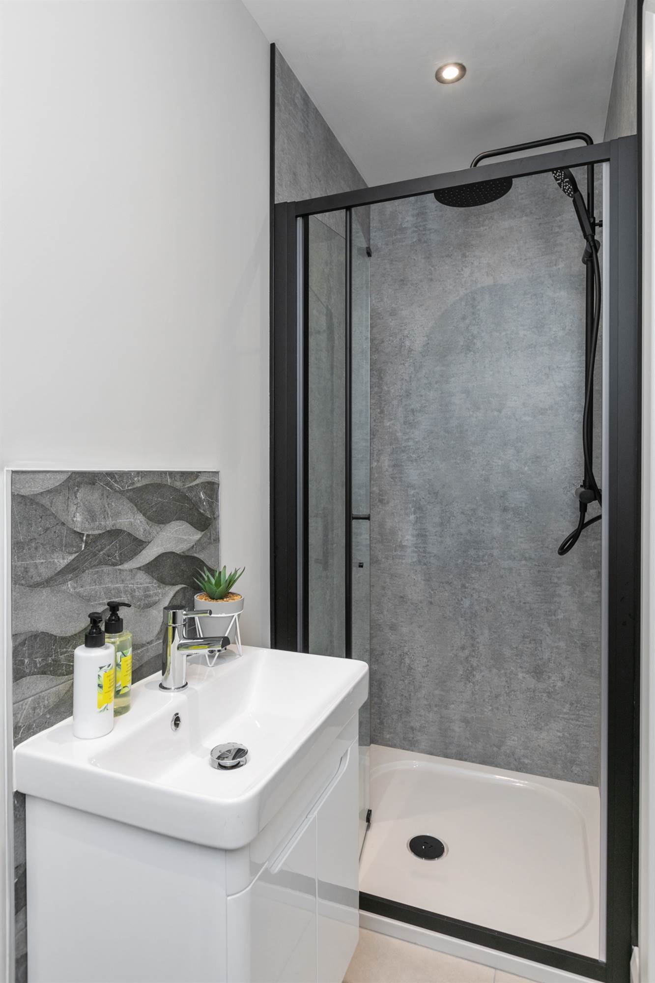 Shower over bath with shower screen or separate bath and shower cubicle depending on house type