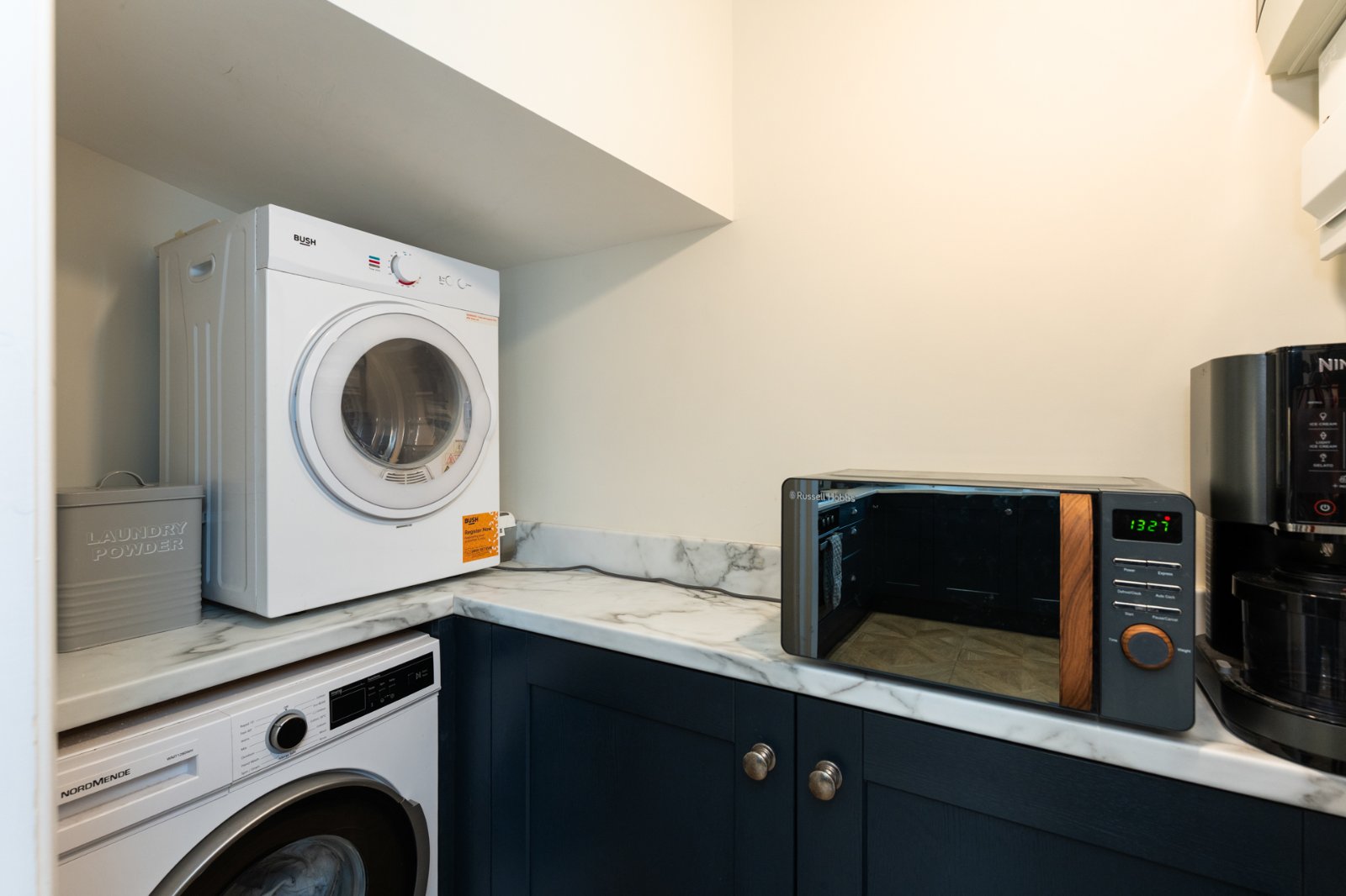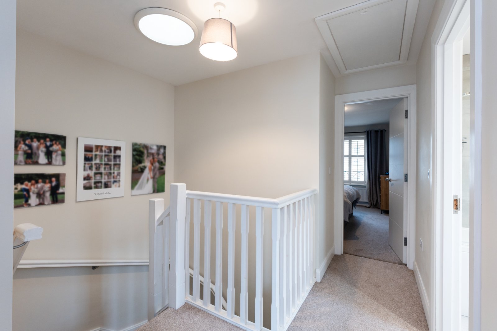 Shelved storage cupboard, access to roofspace via pull down ladder to partially floored roofspace