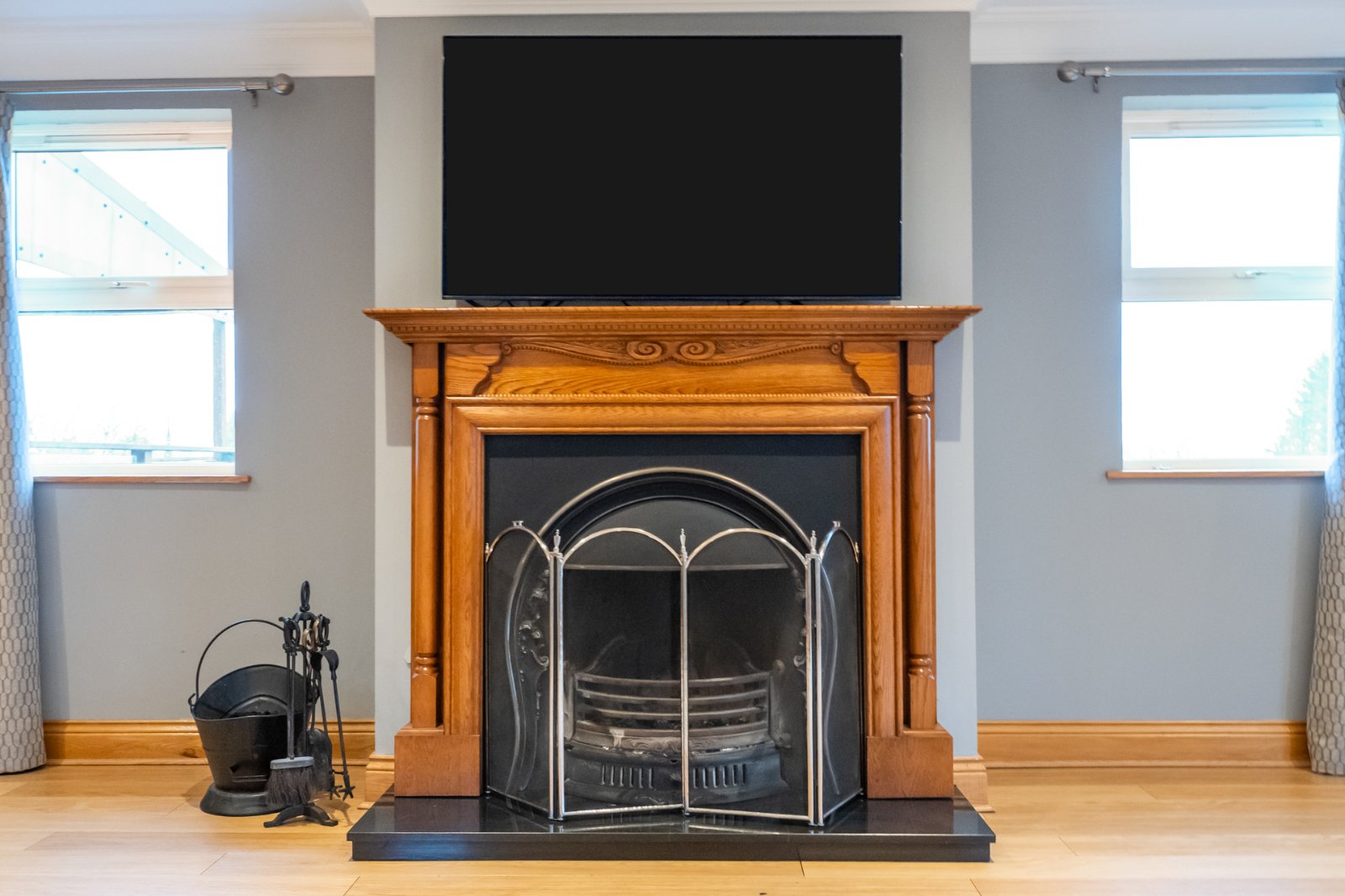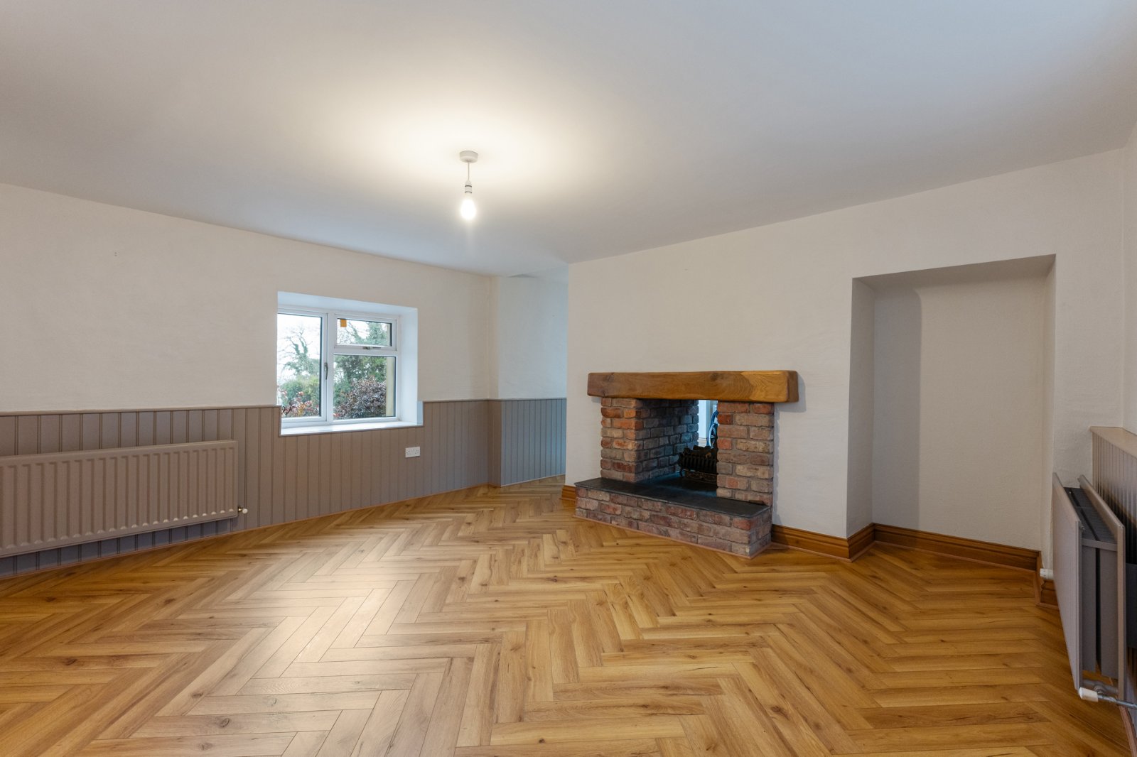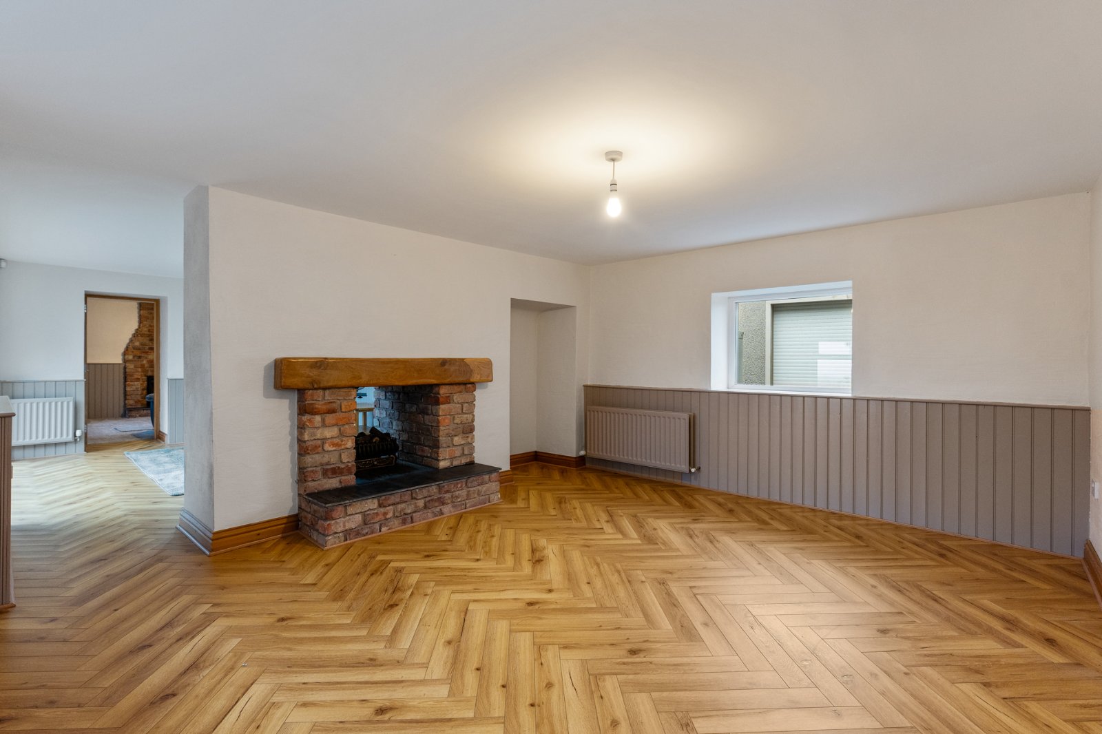 Herring bone wood effect floor, brick fireplace (open to Dining and Sitting Rooms)