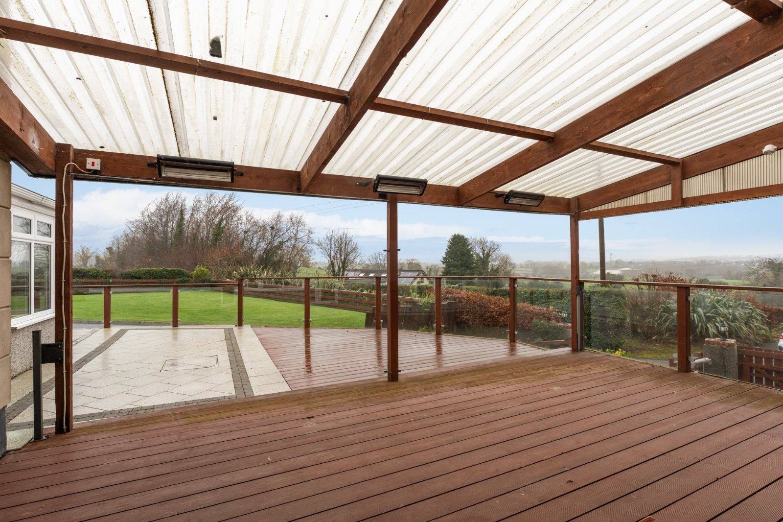 Twin entrances leading to multiple parking and turning areas. Front, side and rear gardens in lawns with an extensive patio enjoying an idyllic outlook.