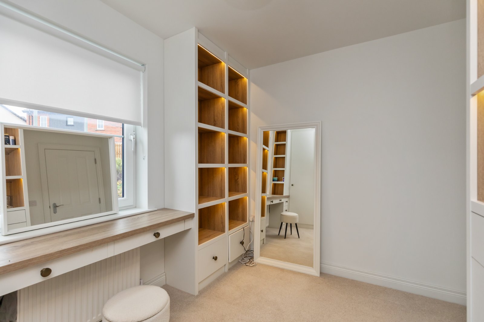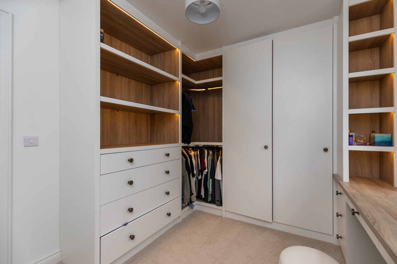 Currently fitted out as a dressing room with an extensive range of units and feature lighting
