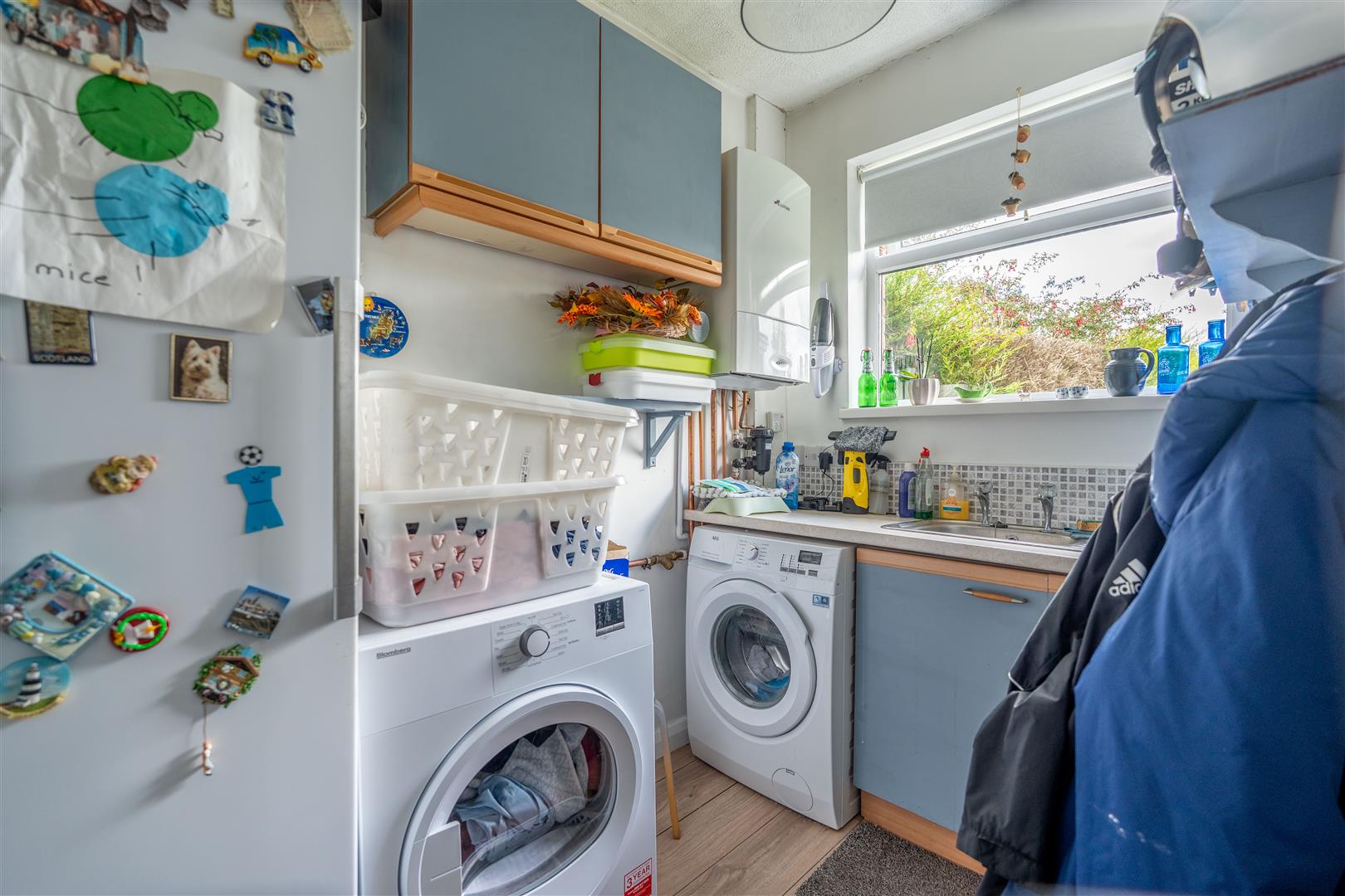 Single drainer stainless steel sink unit; range of high and low level cupboards; laminate worktop; space and plumbing for washing machine; space for tumble dryer and fridge / freezer; Worcester gas fired boiler; wood laminate floor; access to integral garage.