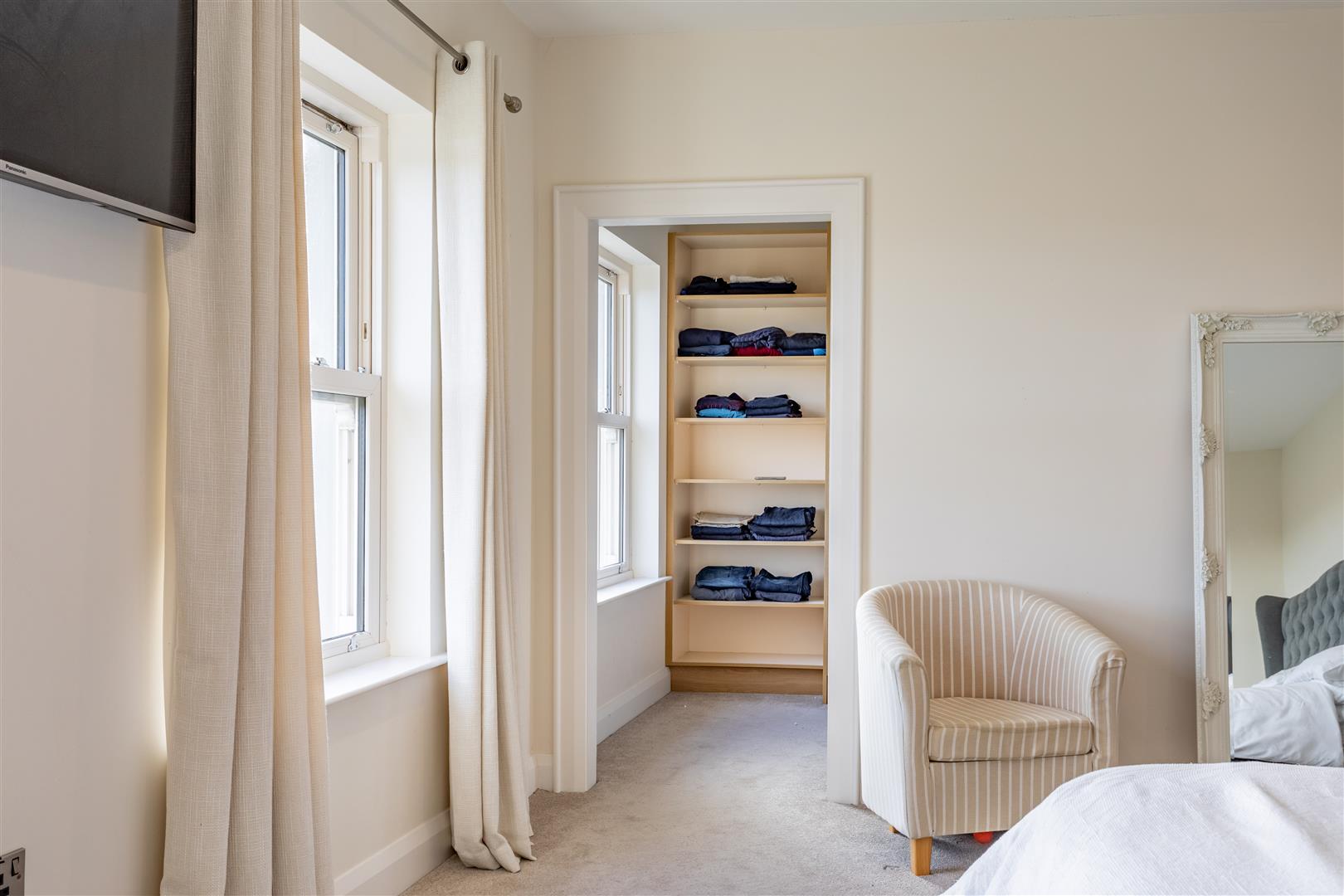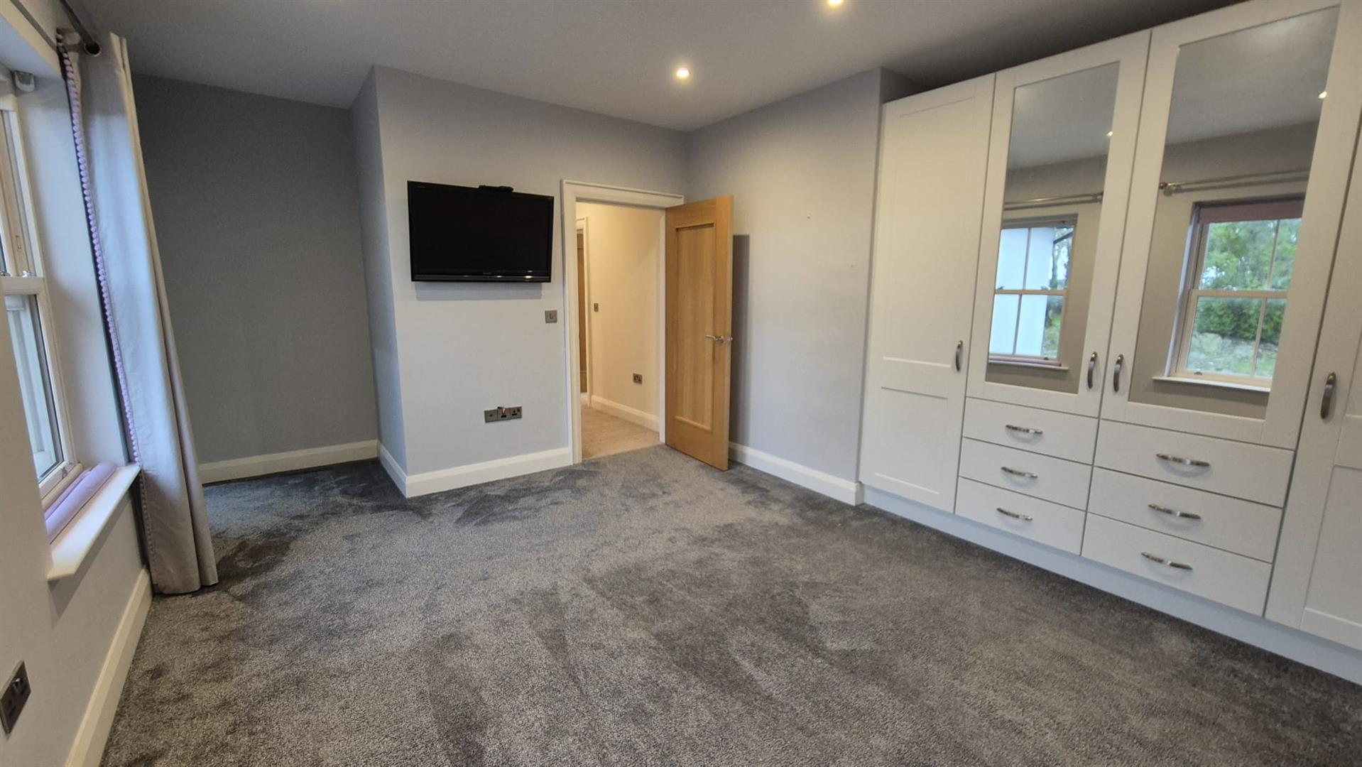 Range of built-in furniture including double wardrobe matching shelved cupboard with mirrored doors and nest of six drawers under; LED spotlighting; ample TV aerial connections; Beam vacuum point.