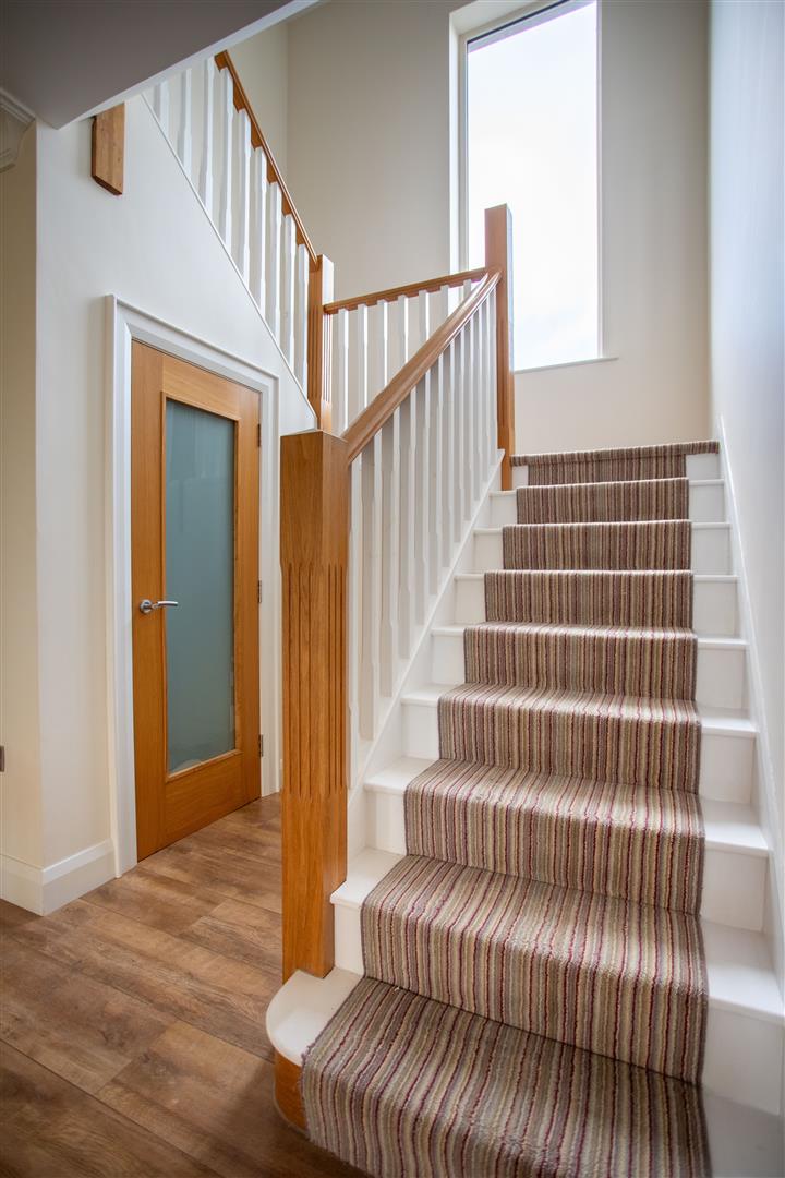 Internally the accommodation is versatile to suit most families needs. The ground floor includes drawing room, generous kitchen, family room, study, bedroom 4 / dining room, adjacent shower room, laundry room and ample storage. The first floor includes three bedrooms each with ensuites. Underfloor heating at ground and first floor combine to create a spacious cosy home.