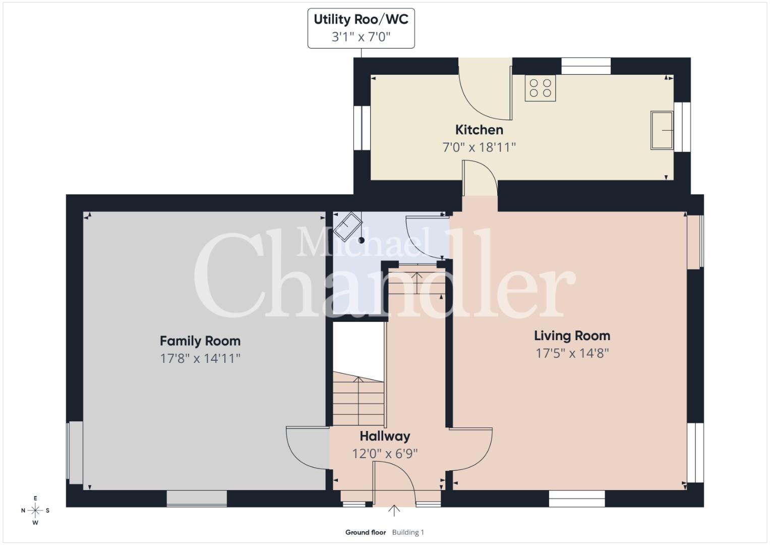 Family room 17'8" X 14'11" (5.38m X 4.55m)
