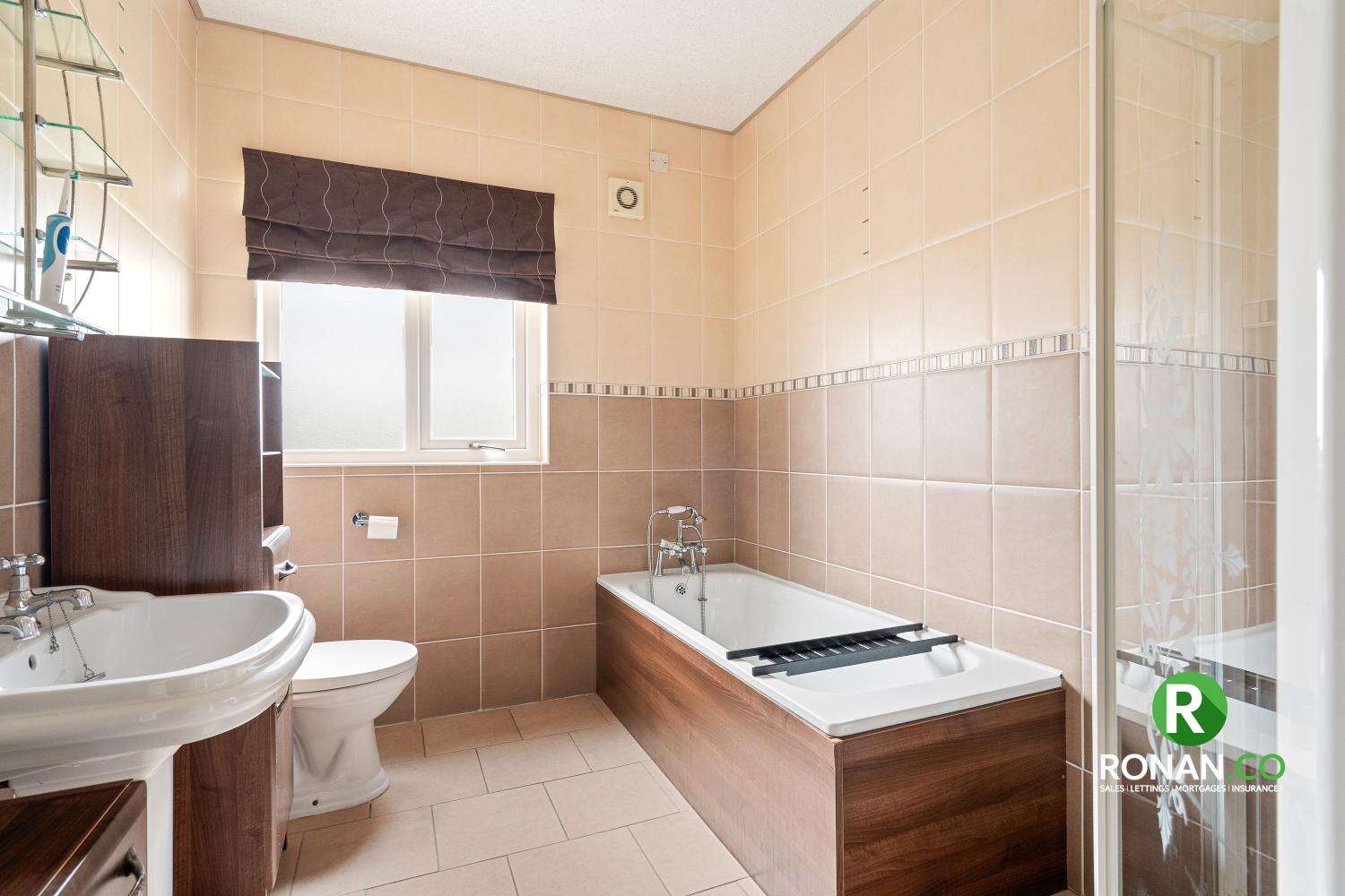 - Tiled Flooring, Fully Tiled Walls, WC, WHB, Bath, Power Shower, LED Spots