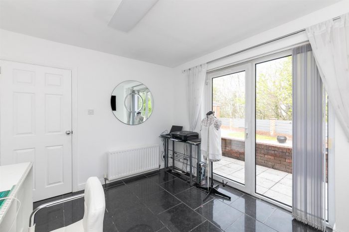 Plumbed for washing machine, plumbed for dishwasher, vented for tumble dryer, tiled floor, access to the the rear gardens.