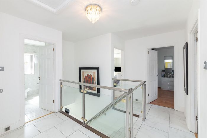 Landing, Skirting board lighting, access to the roof space. Large hot press with ample storage.