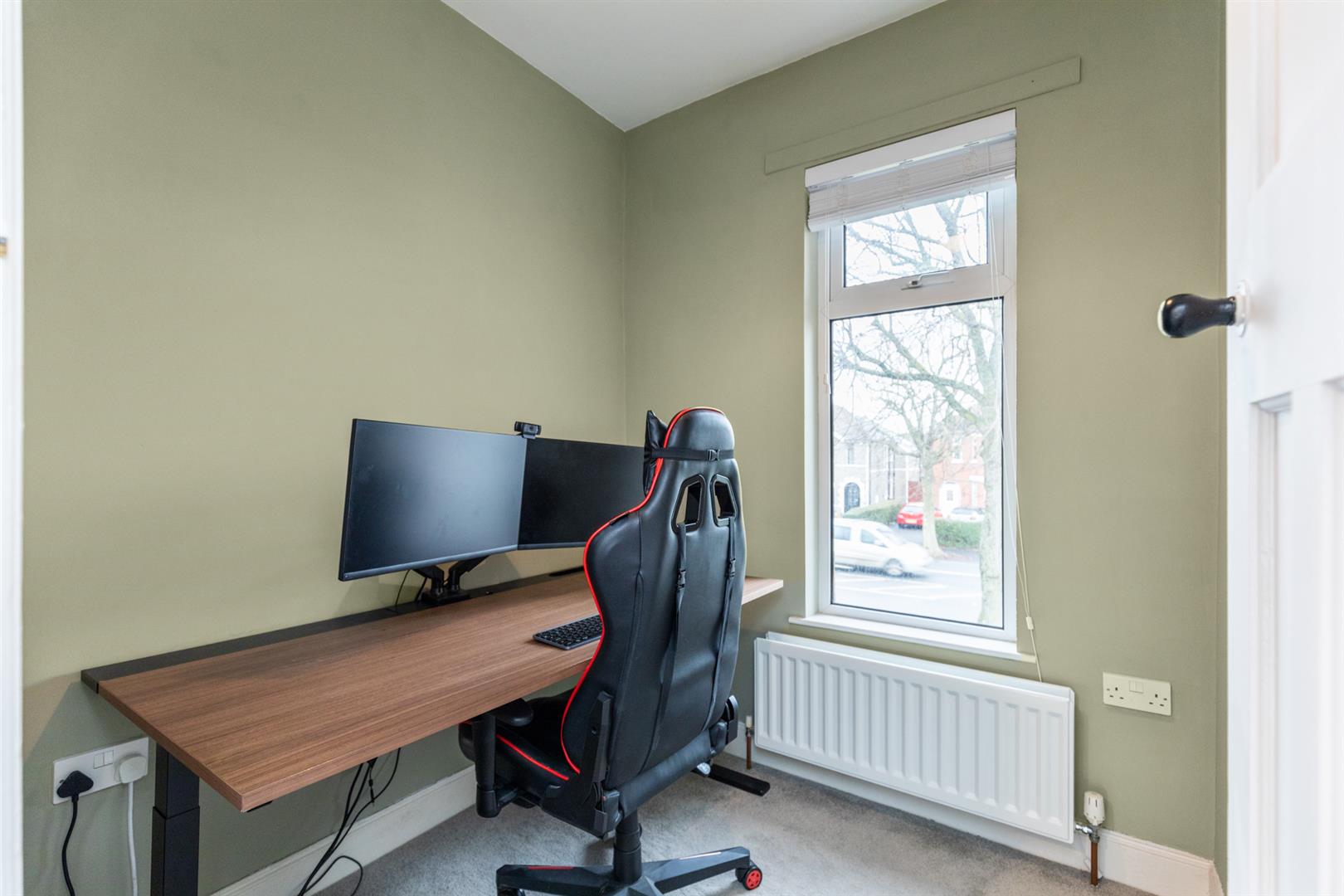 PVC front door, laminate wooden flooring.