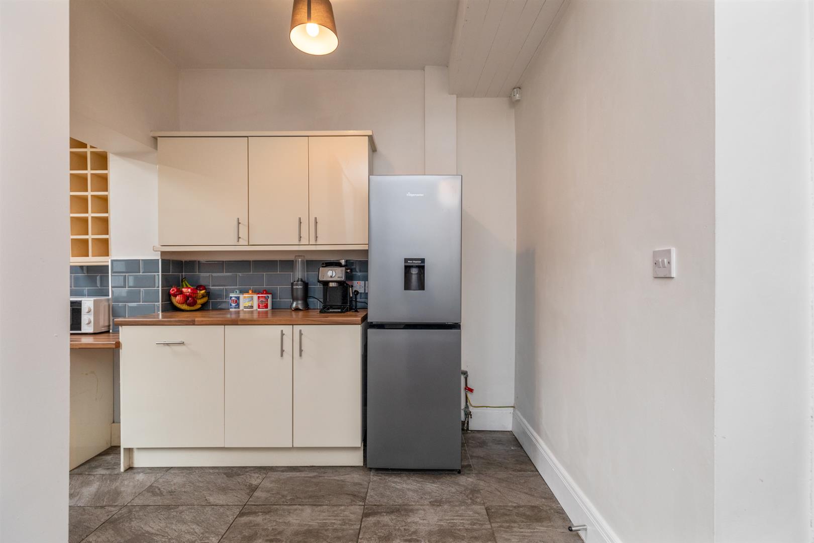 Excellent range of high and low level units, single drainer stainless steel sink unit, stainless steel oven and ceramic hob. Integrated dishwasher, plumbed for washing machine, fully tiled flooring, part tiled walls and velux window.