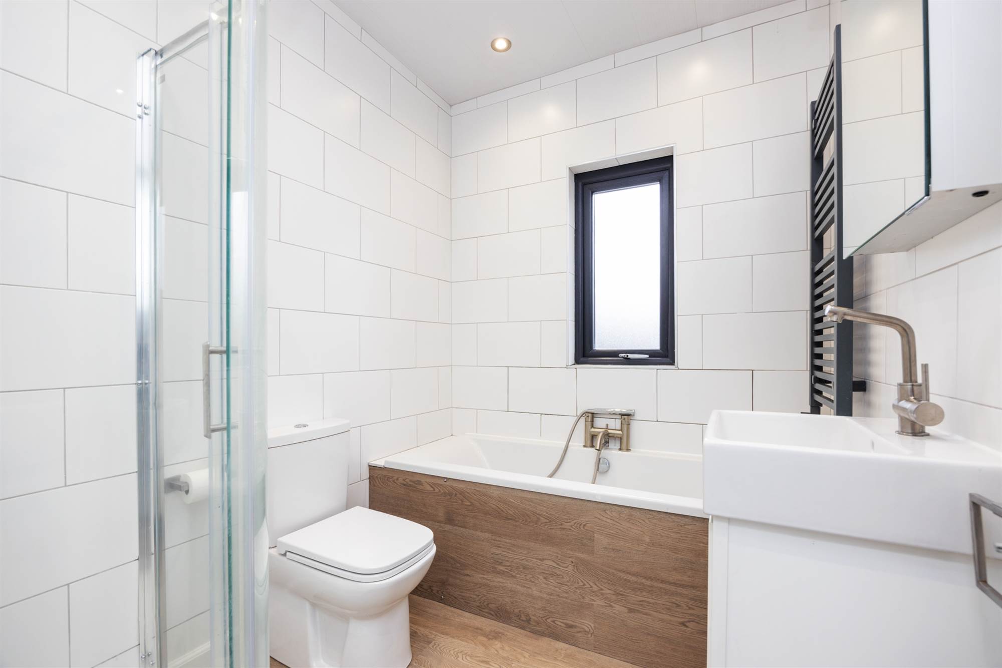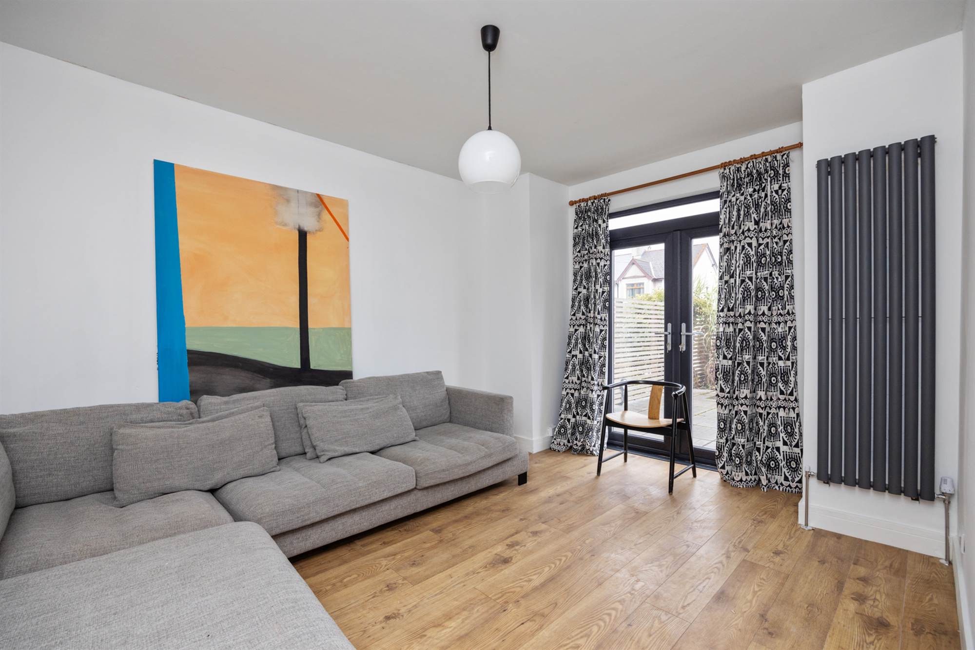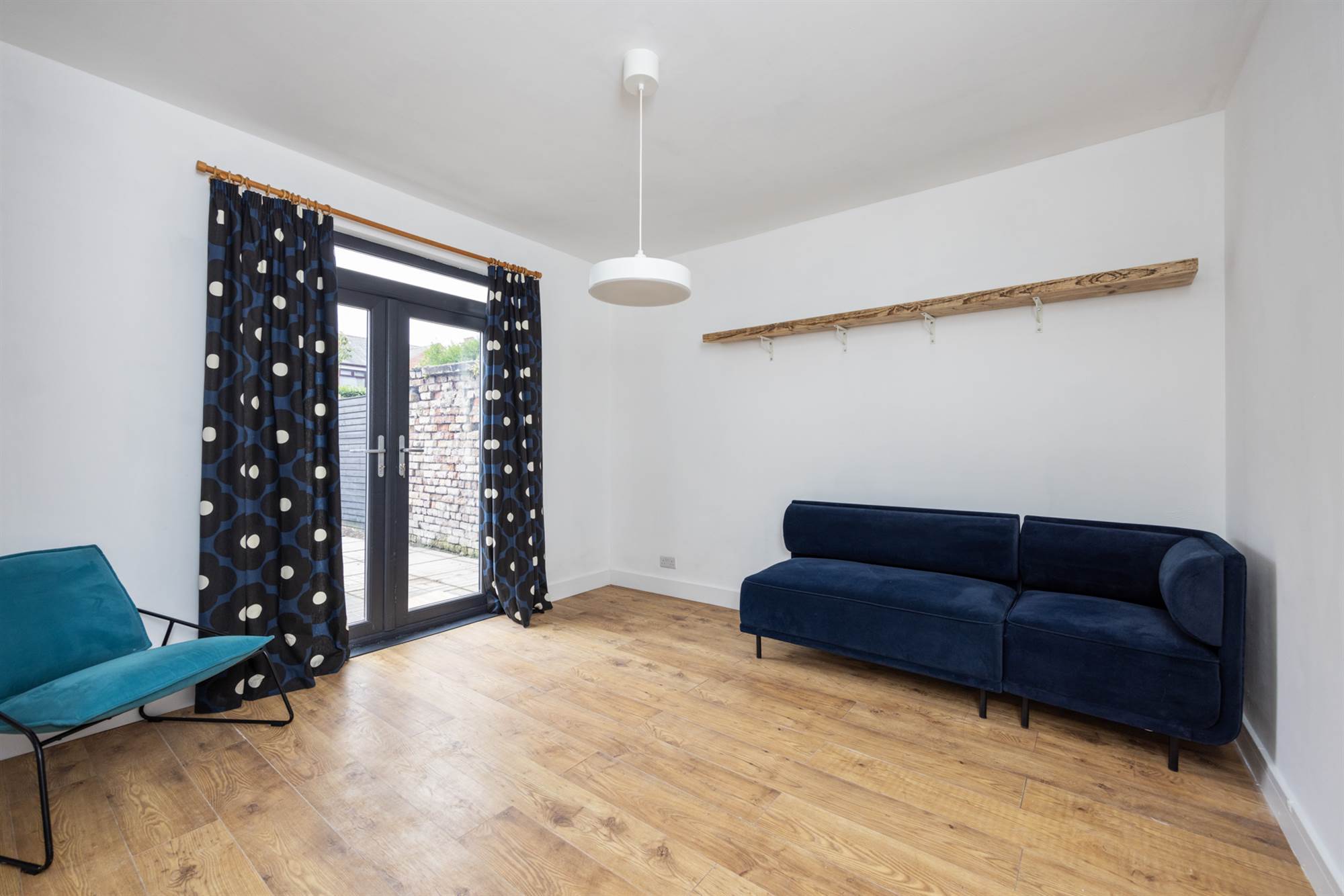 The modern kitchen is open plan to the rear reception which in turn leads out to a good-sized, low maitenance back garden. It enjoys a southerly aspect and is fully enclosed.