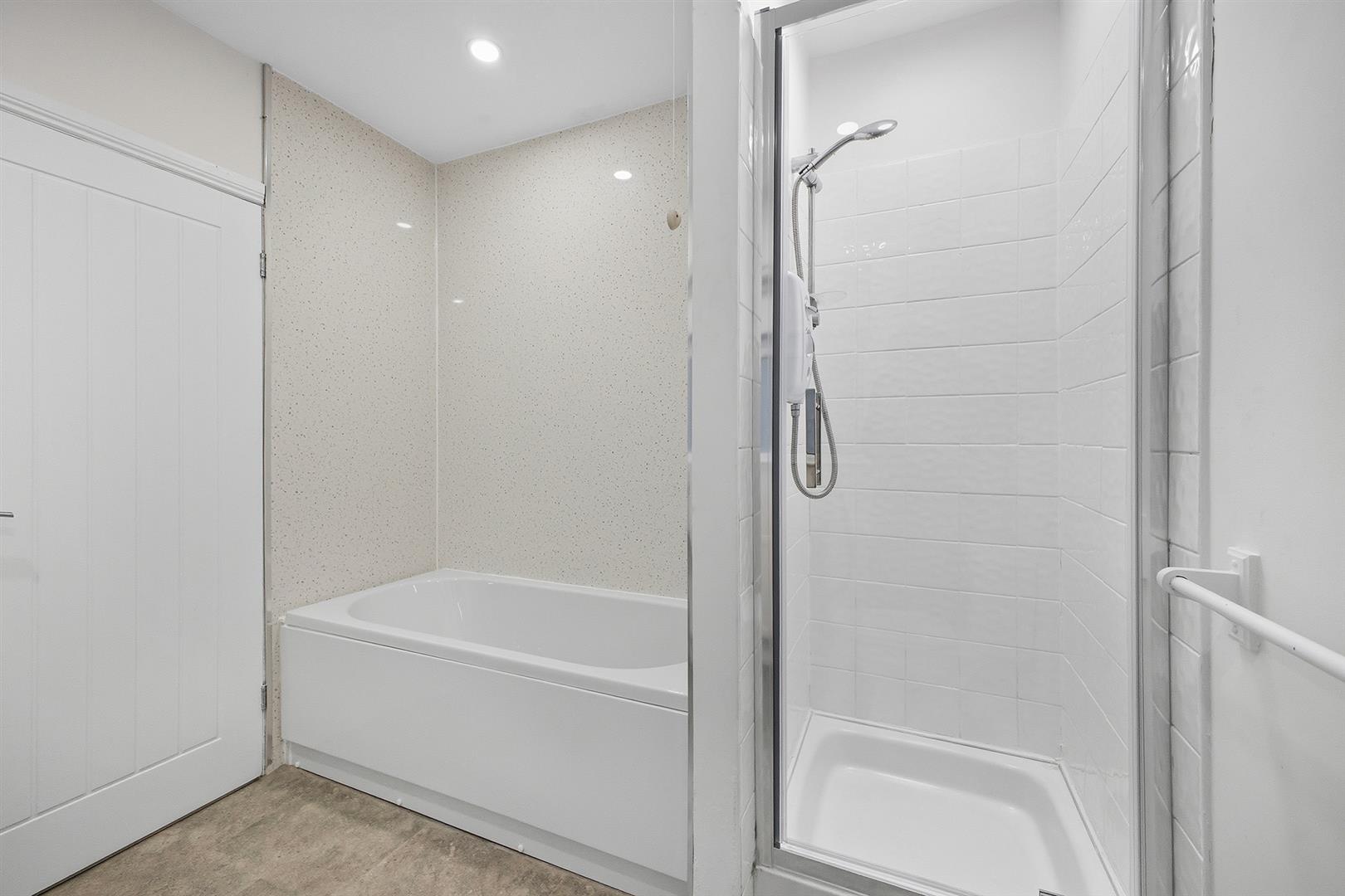 Downstairs bathroom with bath and separate shower