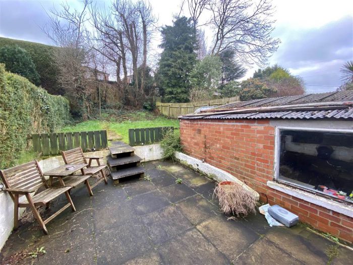 Rear garden with paved patio area.