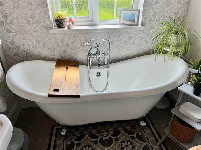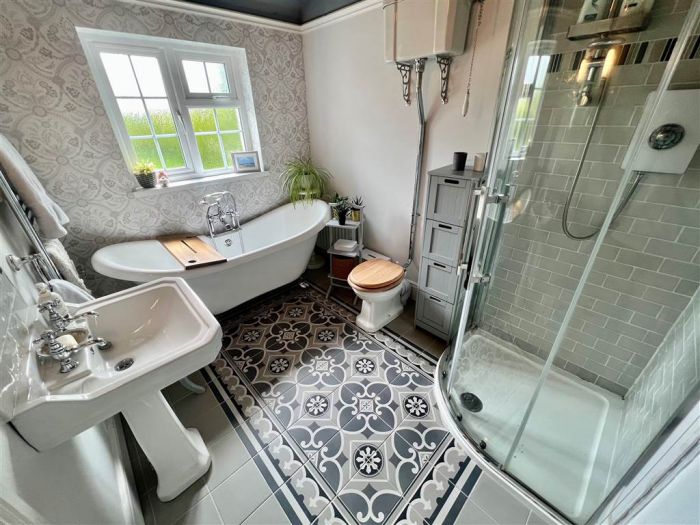 Inside, on the ground floor this is a large living room, snug room, impressive open plan kitchen/dining room and utility room. Upstairs are three bedrooms, luxury bathroom and fully floored roof space accessed via a fixed staircase. There is a master bedroom suite with dressing room and luxury ensuite shower room.. The property has been thoughtfully designed with particular attention given to the flow within.