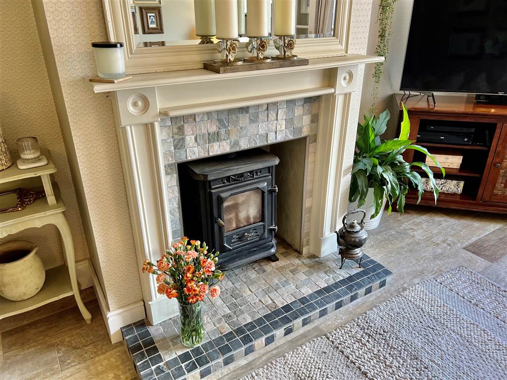 The large living room with its feature fireplace is the perfect place to relax while the open plan kitchen / dining provides the perfect layout for both entertaining and for family living . Upstairs, the same standard of stylish finish continues in the bedrooms, while the large family bathroom is a stunning luxury space complete with free standing bath and walk in shower. There is a driveway to the front of the house and at the back is a landscaped garden with lawn and patios areas.