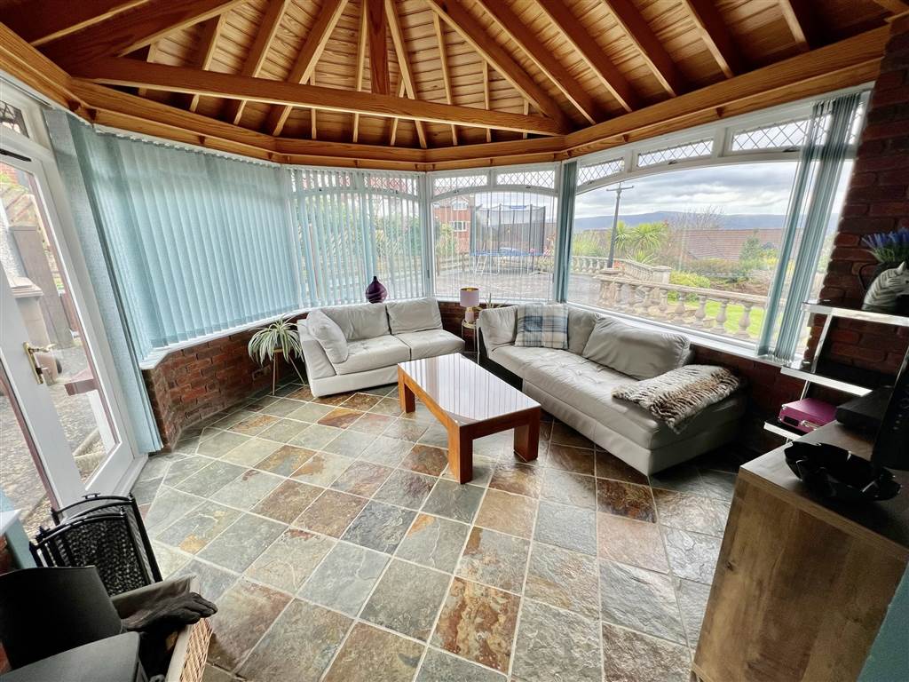 This is an exceptional detached bungalow set on a spacious mature site with outstanding city views. It is ideally situated for ease of access to Belfast city centre as well as main road networks. Internally the spacious and beautifully presented accommodation comprises of a bright family living room open plan to stunning luxury kitchen with separate utility room, sunroom with wood burning stove and three double bedrooms served by a lavish family bathroom .The roofspace at this property is accessed via a fixed staircase and has been converted with three separate rooms. Additional benefits include large double garage, driveway, generous garden and attractive decked patio area perfect for summer BBQs.