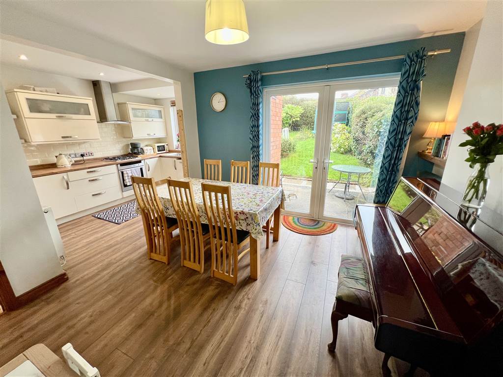 Patio doors leading to rear decking. Open to kitchen