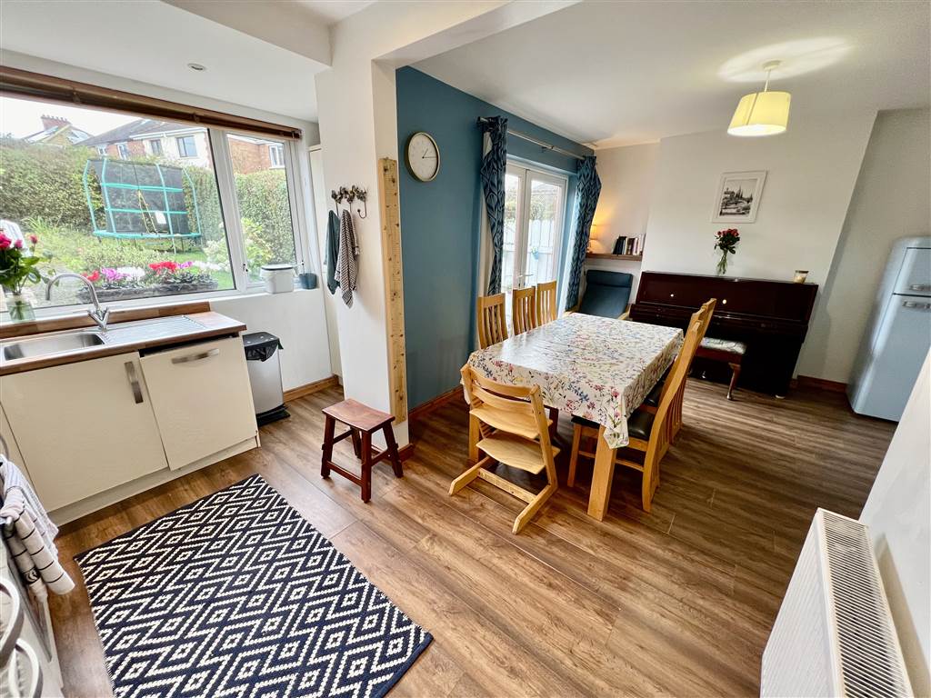Open-Plan Kitchen/Dining Area: Step There is a spacious open-plan kitchen and dining area that create an inviting atmosphere for family gatherings and entertaining friends. While patio doors leading to the rear garden merge inside and outside perfectly.