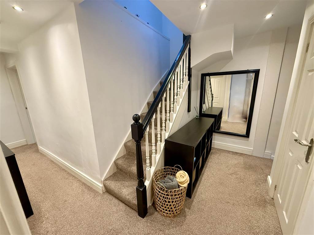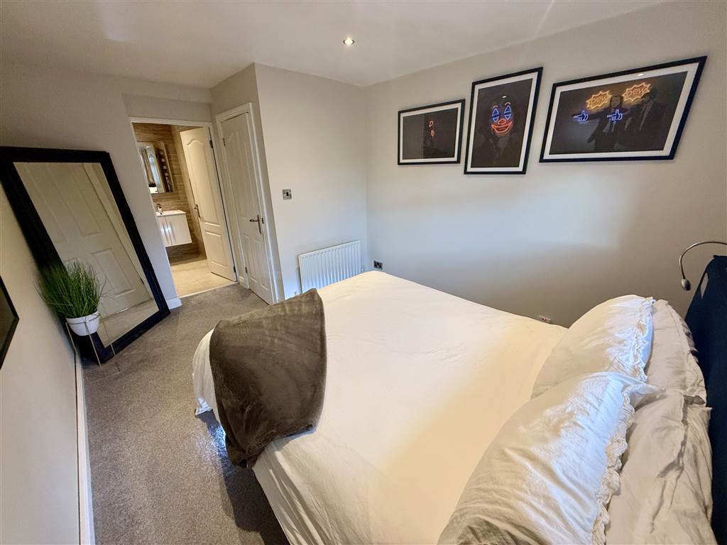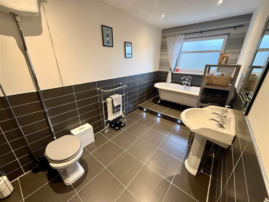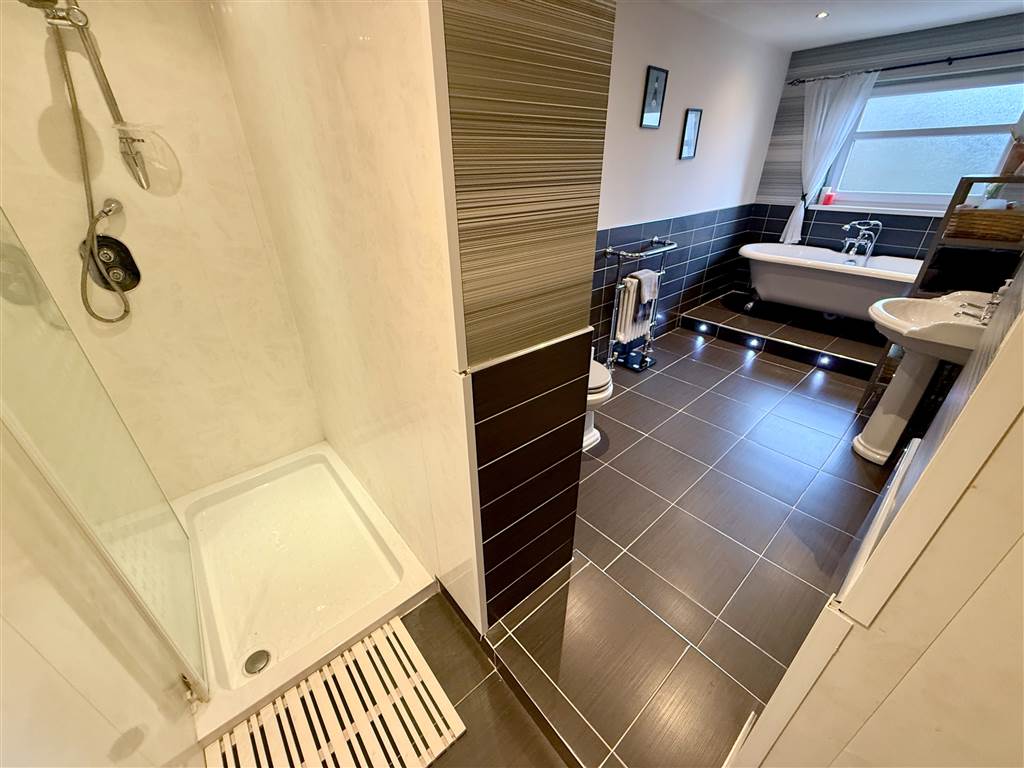 Upstairs, the main bedroom benefits from a private en-suite shower room while there is an impressive walk-in wardrobe which could also be used as a home office . Two additional bedrooms are also located on this level, including one created through a roof-space conversion. The family bathroom is finished to a luxurious standard and features both a bath and a separate shower.