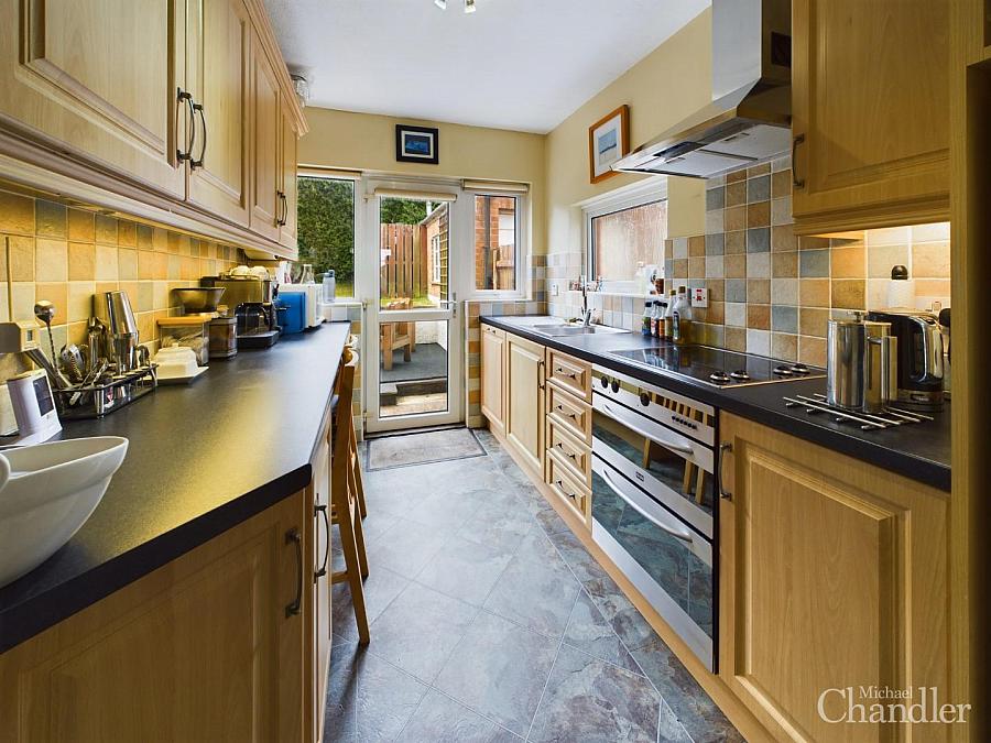 Downstairs comprises a welcoming entrance hall with under stair storage, a lovely bright living room with a feature fireplace and a polished wood floor that leads to a raised dining area. There is also a galley style kitchen with a good range of units that open onto the rear garden. Upstairs offers two double bedrooms, a single bedroom and a family bathroom with a white three-piece suite.
