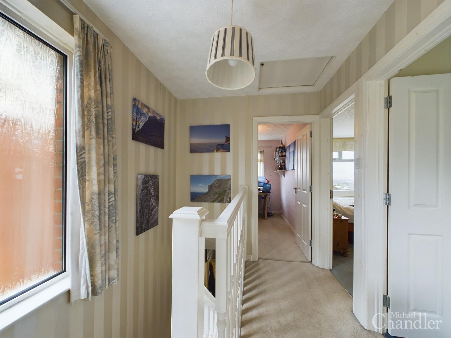 To the front there is a garden laid in lawn. To the side there is a tarmac driveway providing off-street parking for multiple cars that leads to a detached garage. The rear garden is very private and benefits from a patio area and a small lawn.