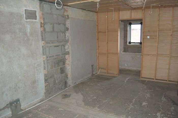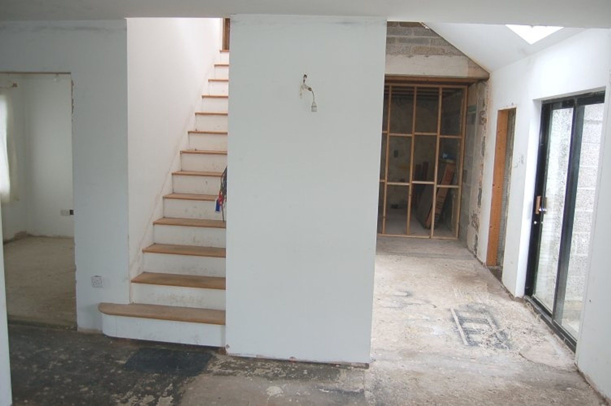 Originally a pair of semi detached bungalows, the properties have been combined to form the basis of a four bedroom family home. There has been a sun room extension and the interior has been fitted out to first fix electrics and plumbing stage with work still required including plasterwork, central heating, kitchen and bathrooms. There is a staircase to the first floor which has been fitted out as a potential extra bedroom and study area. All works carried out so far require Building Control approval and may require planning consent.