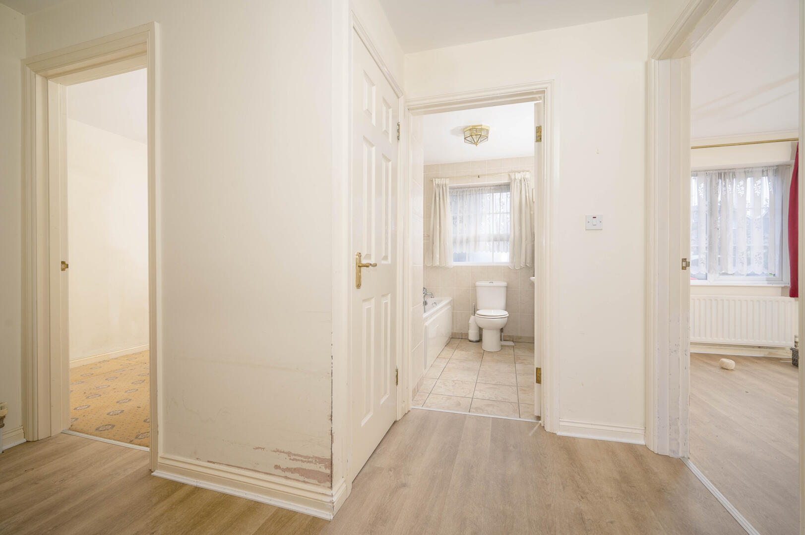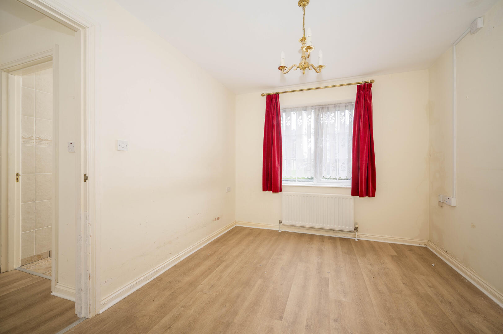 Outlook to rear, laminate wooden floor.