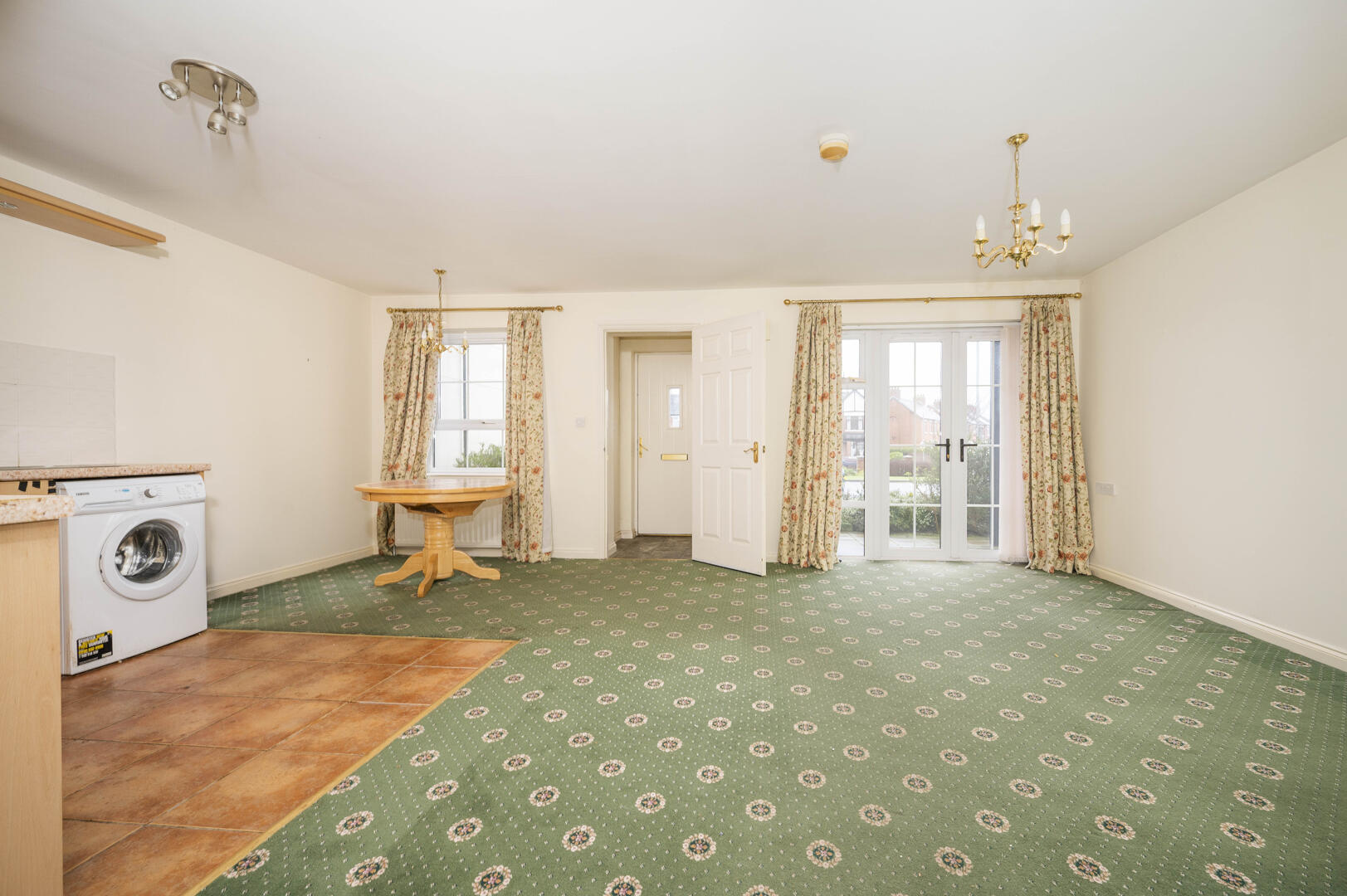 Open Plan Kitchen, Living and Dining Room with Access to a Private Front Patio Area