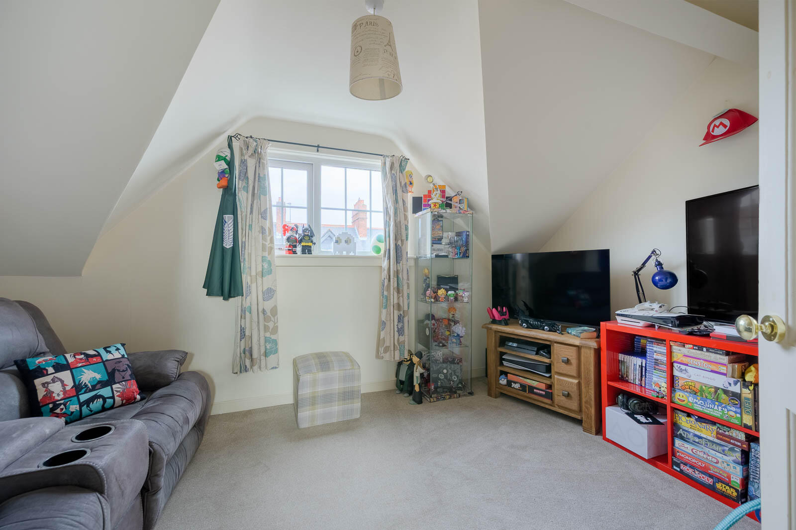 The top floor provides two additional spacious bedrooms, each set beneath attractive sloping ceilings. These rooms are ideal for older children, guest accommodation, or home-working spaces, with ample room for desks, storage and seating. This level benefits from an additional family bathroom.