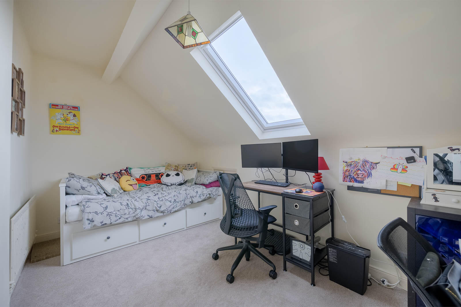 Original fireplace, Velux window, eaves storage.