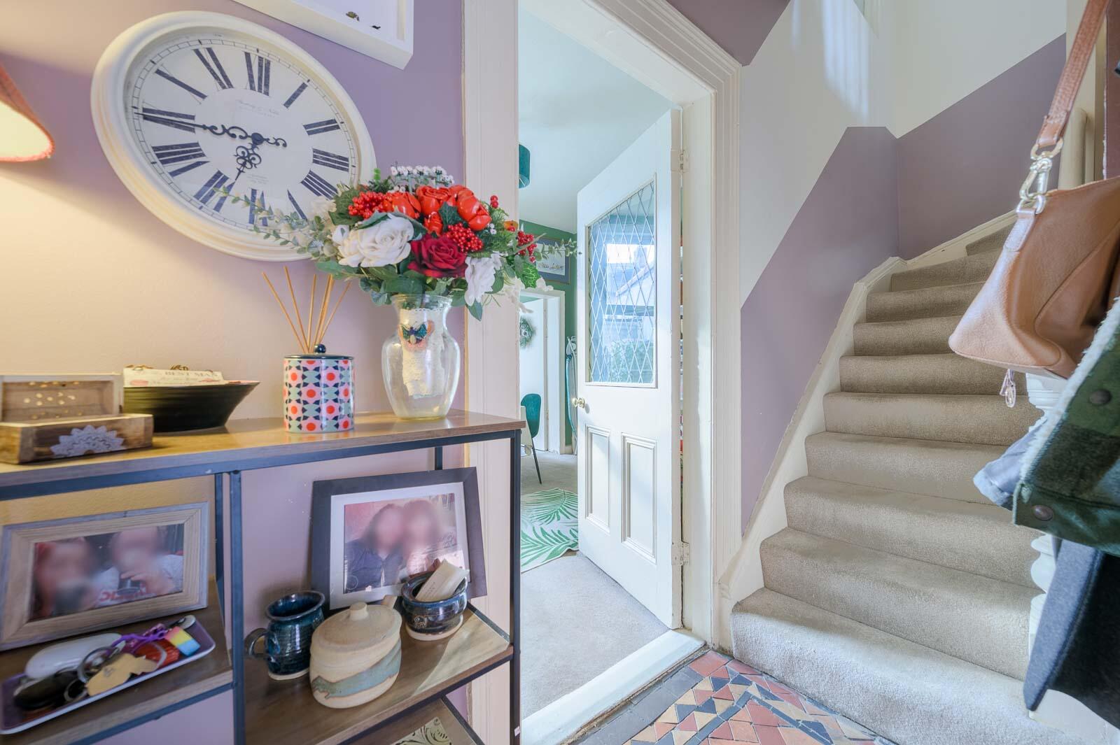 Upon entering, you are welcomed into a warm and inviting home with bright, well-presented rooms throughout. The ground floor offers excellent versatility, beginning with a stylish lounge featuring a deep-set media alcove and contemporary décor. A second spacious reception room provides further flexibility-ideal as a formal dining room, playroom, or home office-enhanced by vibrant colours, attractive picture rails and excellent natural light.