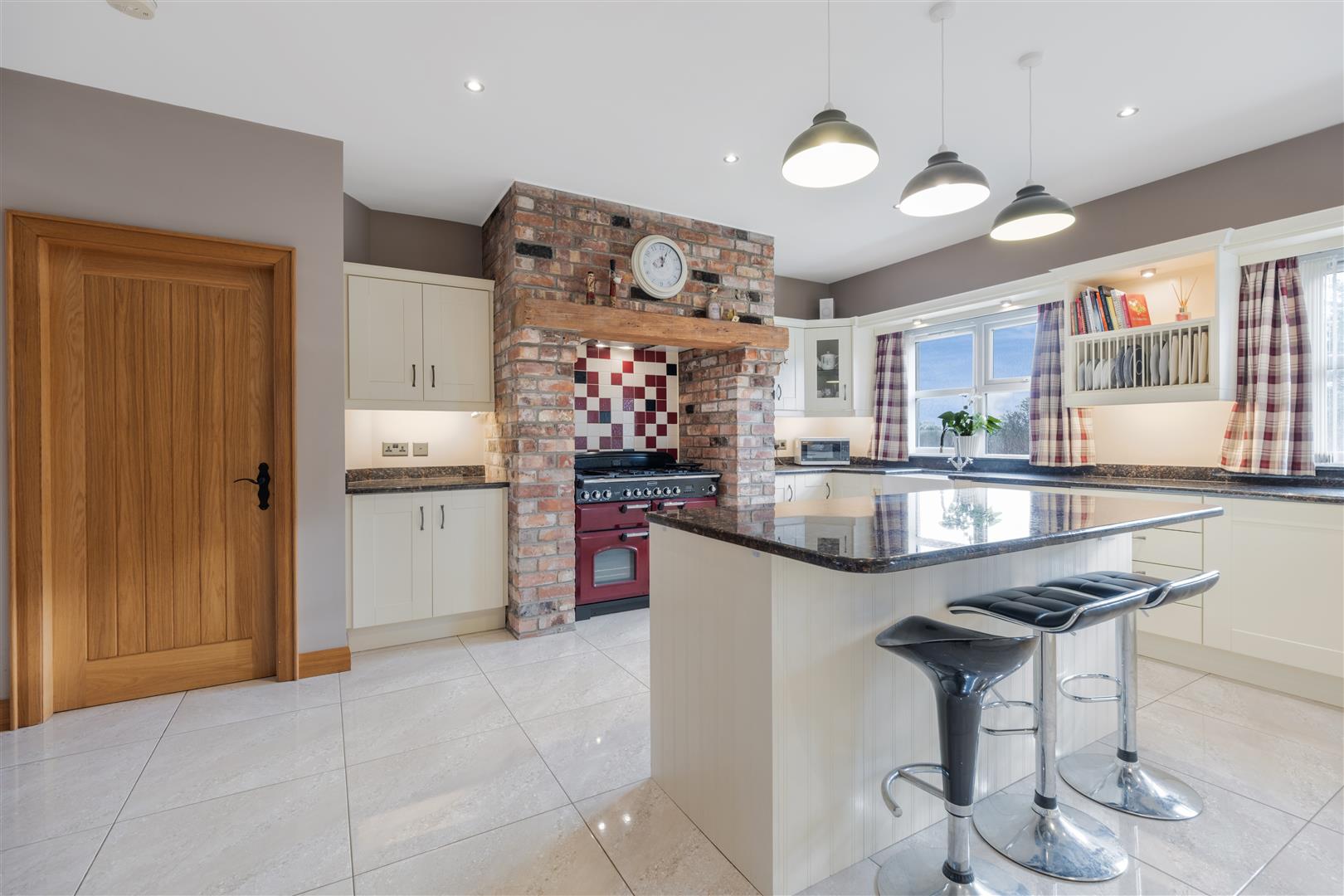 Extending to circa 3,250 sq ft this turnkey property delivers spacious, light-filled rooms, a superb open plan kitchen/dining/family area with feature brick fireplace, a bright sun room, and luxurious bedroom suites.