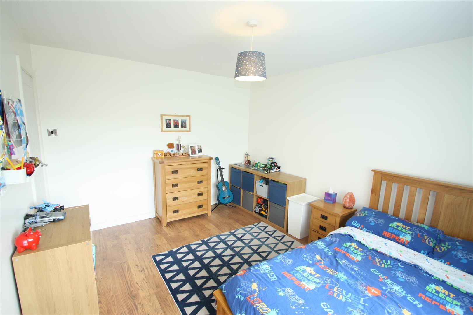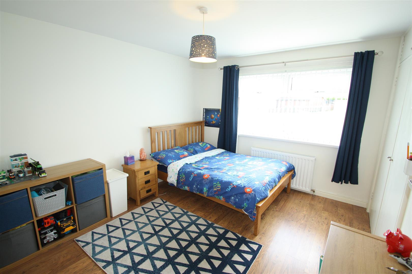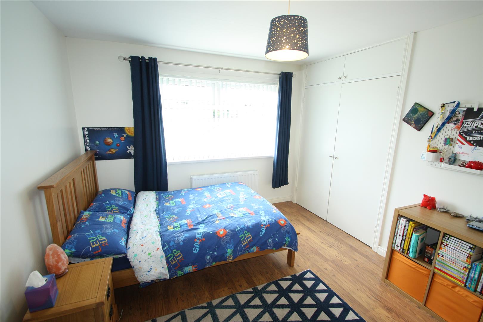 Rear facing room with built in wardrobe.