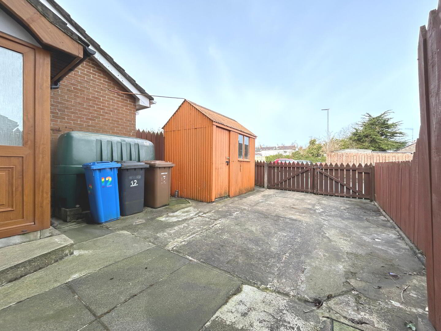 Open yard to rear comprising 2 “off street” car paces and oil storage tank
